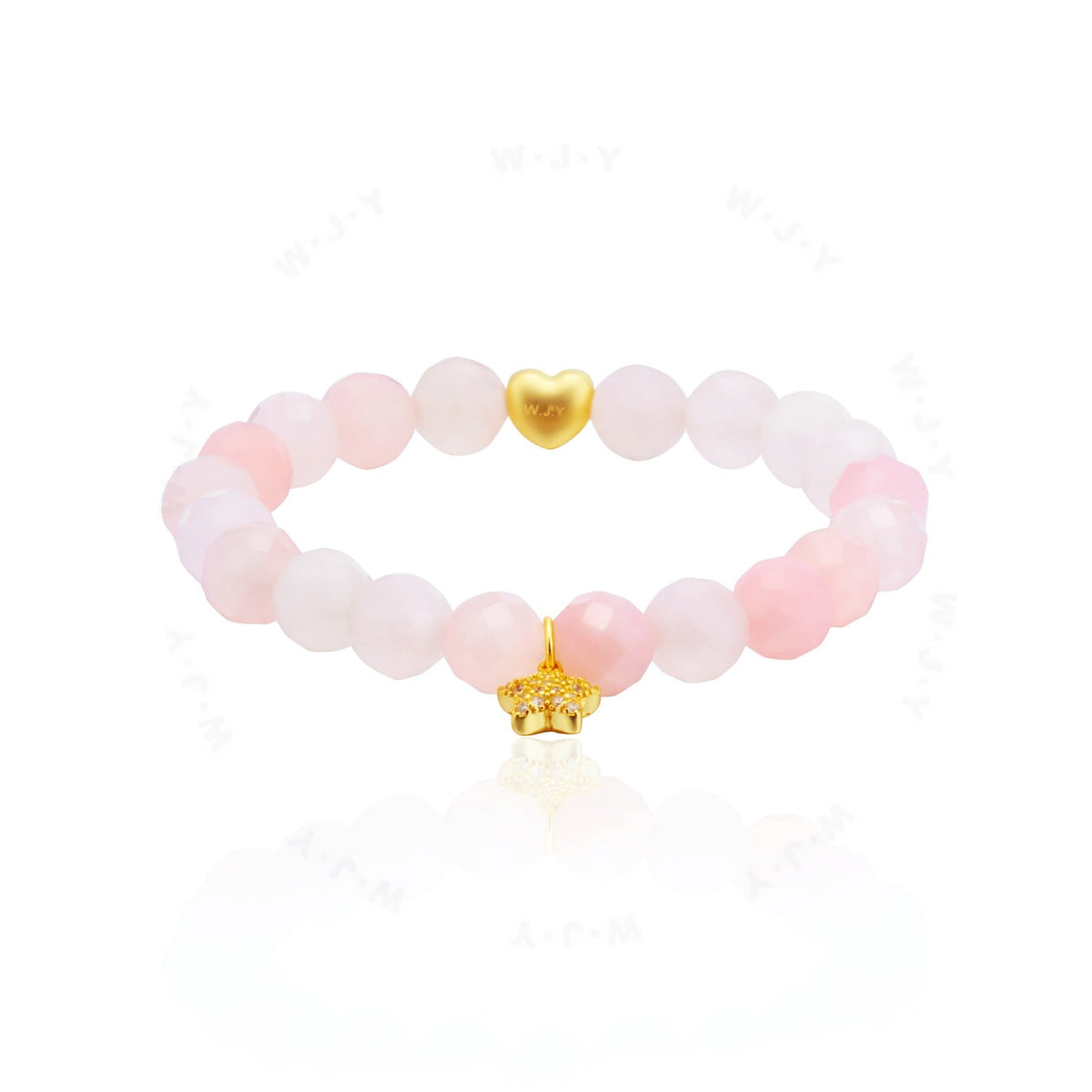Natural Rose Crystal Love Stars Gold-Plated Silver Bracelet