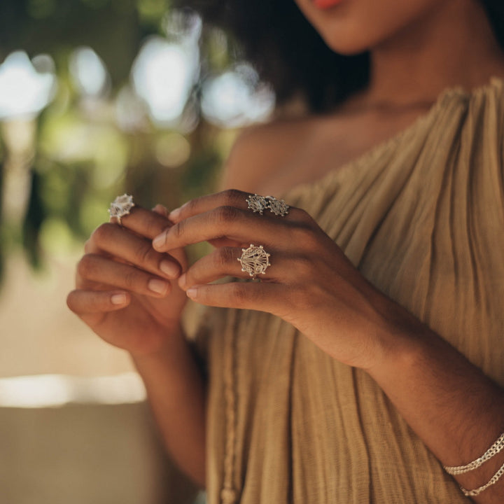 This Alma Simple Ring by Mamba is a symbolic and beautifully handcrafted piece that encourages a return to your core self. The simple ring design represents a connection to what defines you and to the simple things that bring happiness. The artisan production ensures each piece is unique with its own magical variations. This ring is a wearable reminder to reconnect with your soul and to the love and joy in your life.