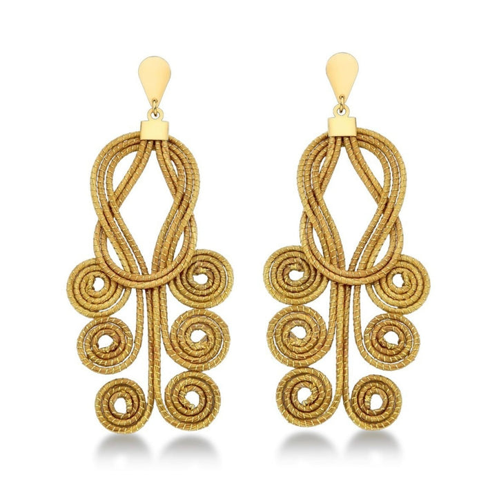 These Oshun Earrings by Raízes are inspired by the fluid beauty of Rio de Janeiro’s freshwater springs. Their graceful spiral curves mirror the flow of water, blending bold presence with feminine elegance. A statement piece rooted in nature’s serenity, they channel timeless sophistication and symbolic harmony.