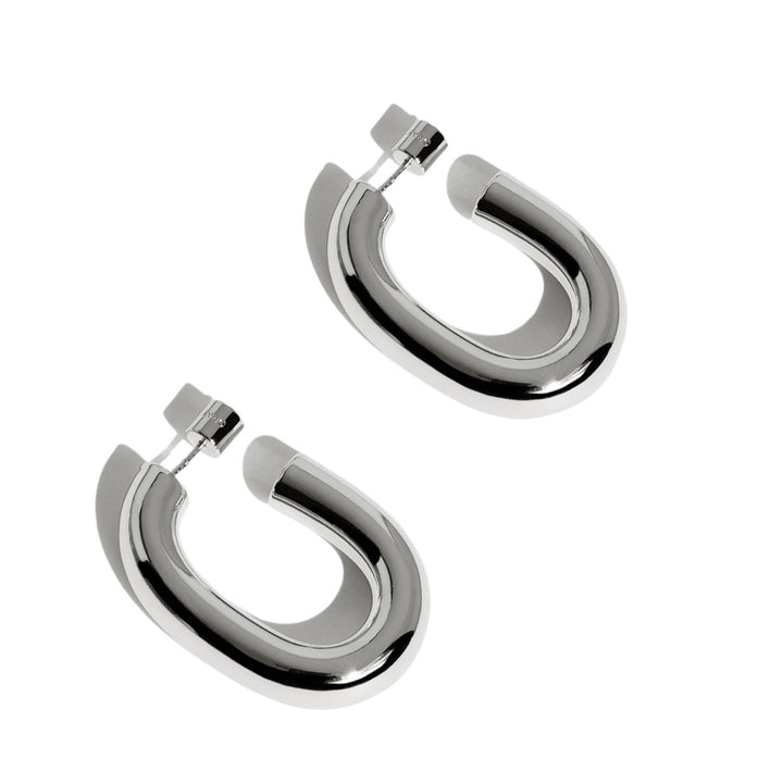 These Capri Hoops in Silver by Drae Collection are a bold and elegant statement piece. The puffy oval shape gives a modern twist to the classic hoop, making them a versatile accessory you'll love for their ability to be worn day or night. Get ready to turn heads with these tarnish-free favorites.