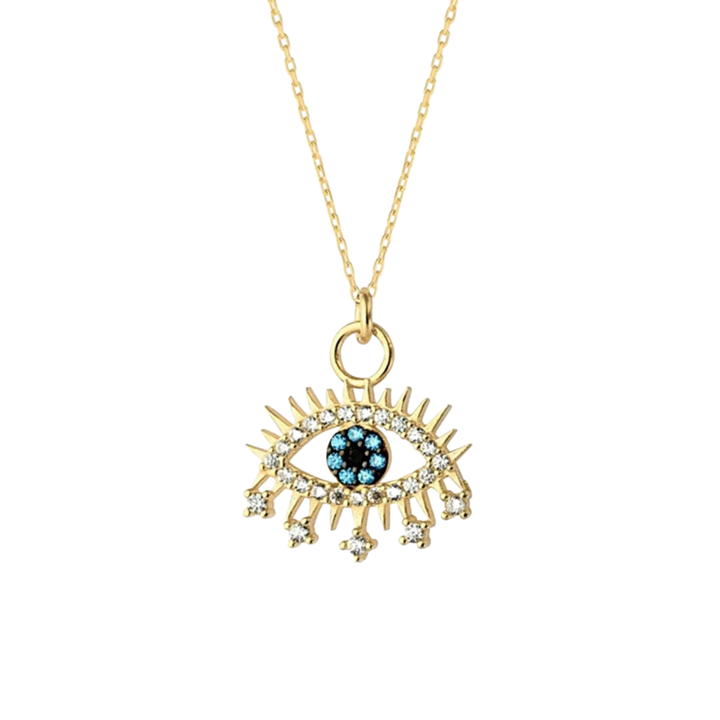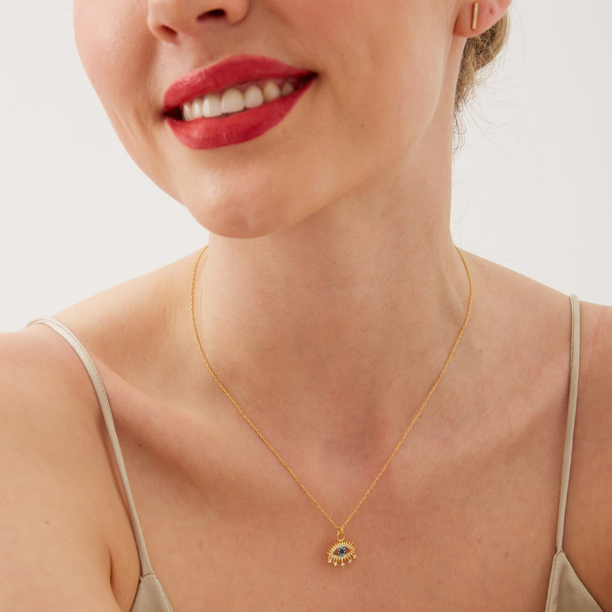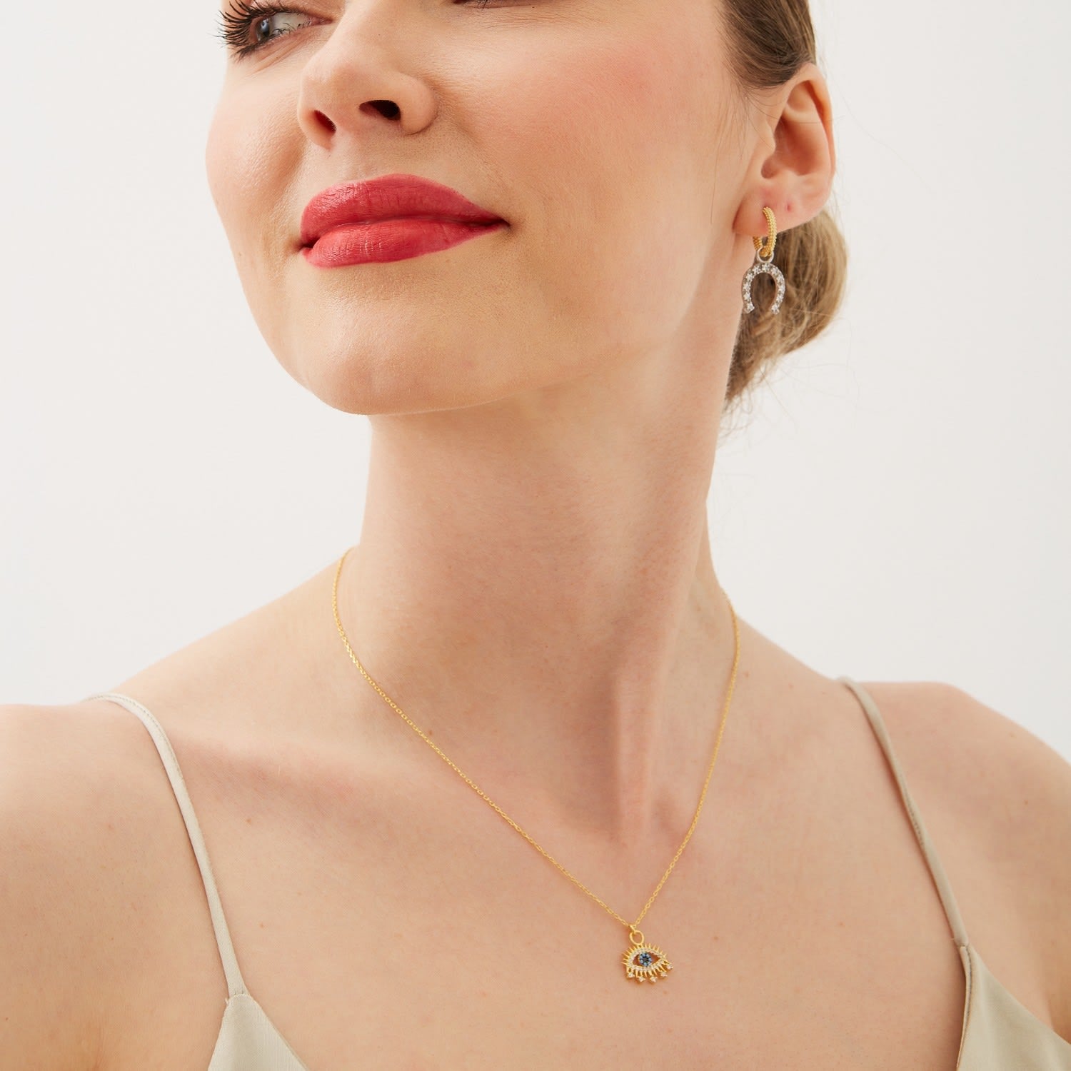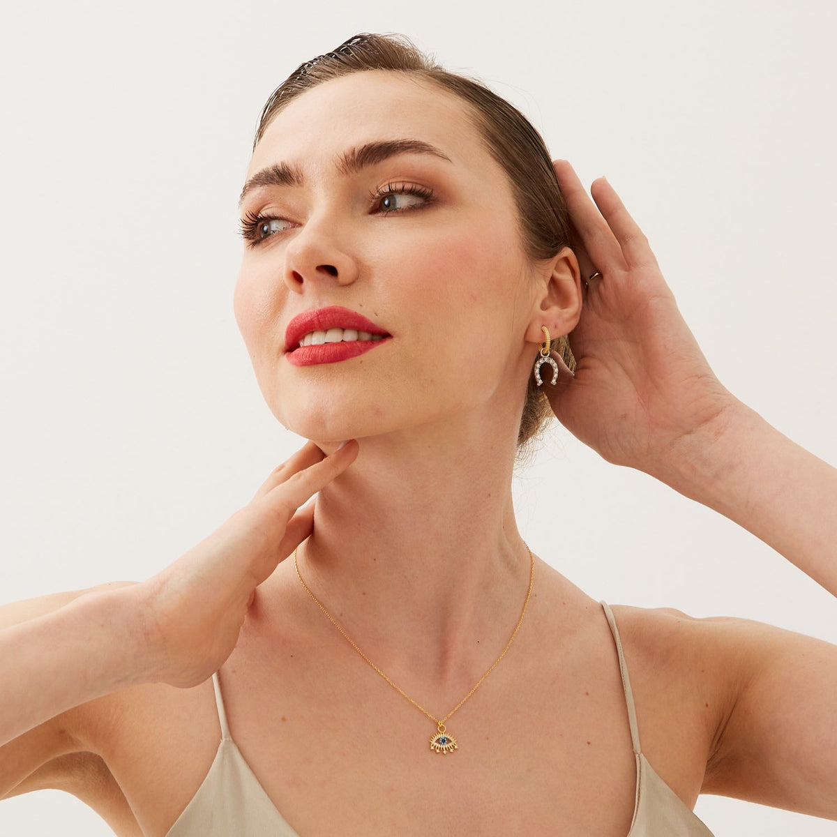 Evil Eye Earring Blue Eye Sterling Silver Pendant Eyelash Necklace - Gold