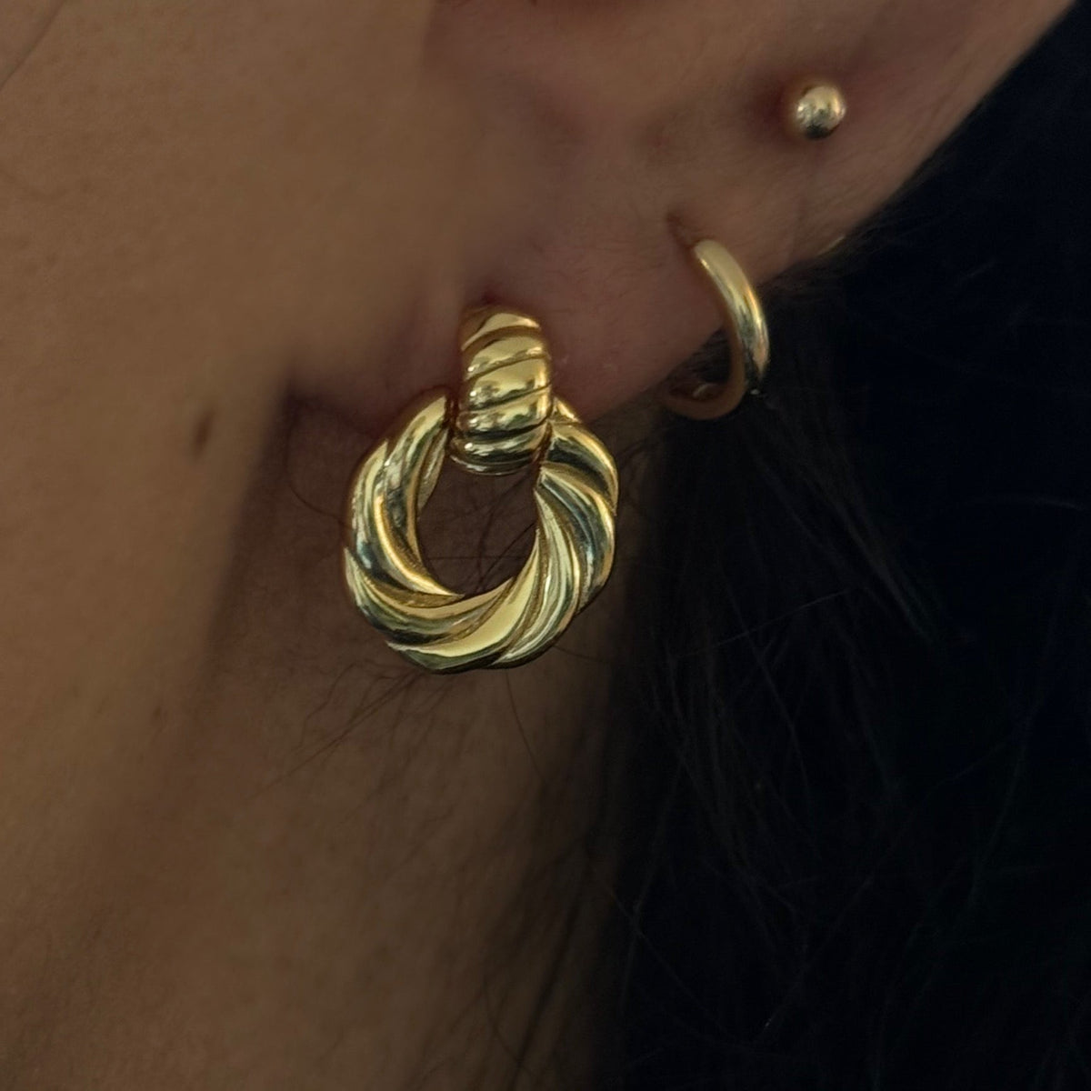 These Mini Twisted Round Knot Earrings by Nazzar are a delicate and contemporary accessory that adds a touch of subtle sophistication to your everyday style. The elegant twisted texture catches the light beautifully, creating a versatile and eye-catching look. Their compact size makes them perfect for a minimalist aesthetic or for adding to an ear stack. Crafted with a focus on sustainability, they are a beautiful, high-quality, and eco-conscious accessory for any occasion.