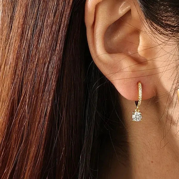These Dainty Zirconia Drop Gold Earrings by Nazzar are a delicate and elegant accessory. The design features a subtle gold setting with cascading zirconia stones that sparkle beautifully. These earrings are a perfect blend of grace and brilliance, effortlessly transitioning from day to night. Their versatile and sophisticated aesthetic makes them a go-to piece for adding a touch of luminous glamour to any look.