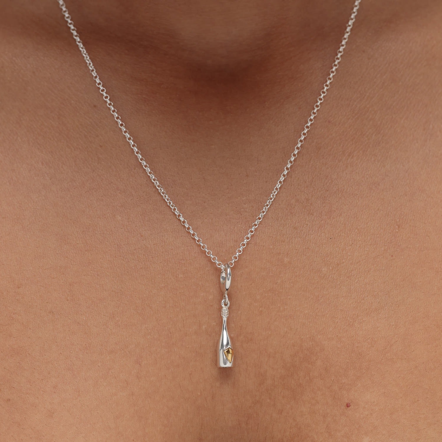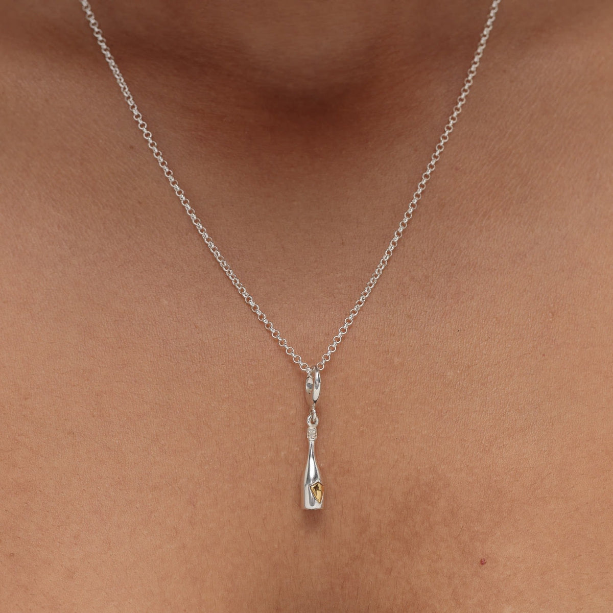 Sterling Silver Champagne Bottle Charm Necklace