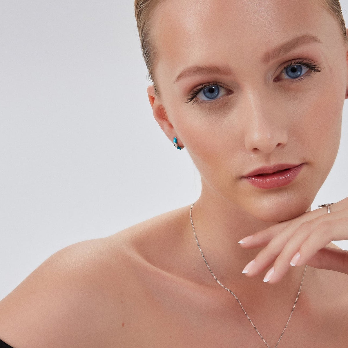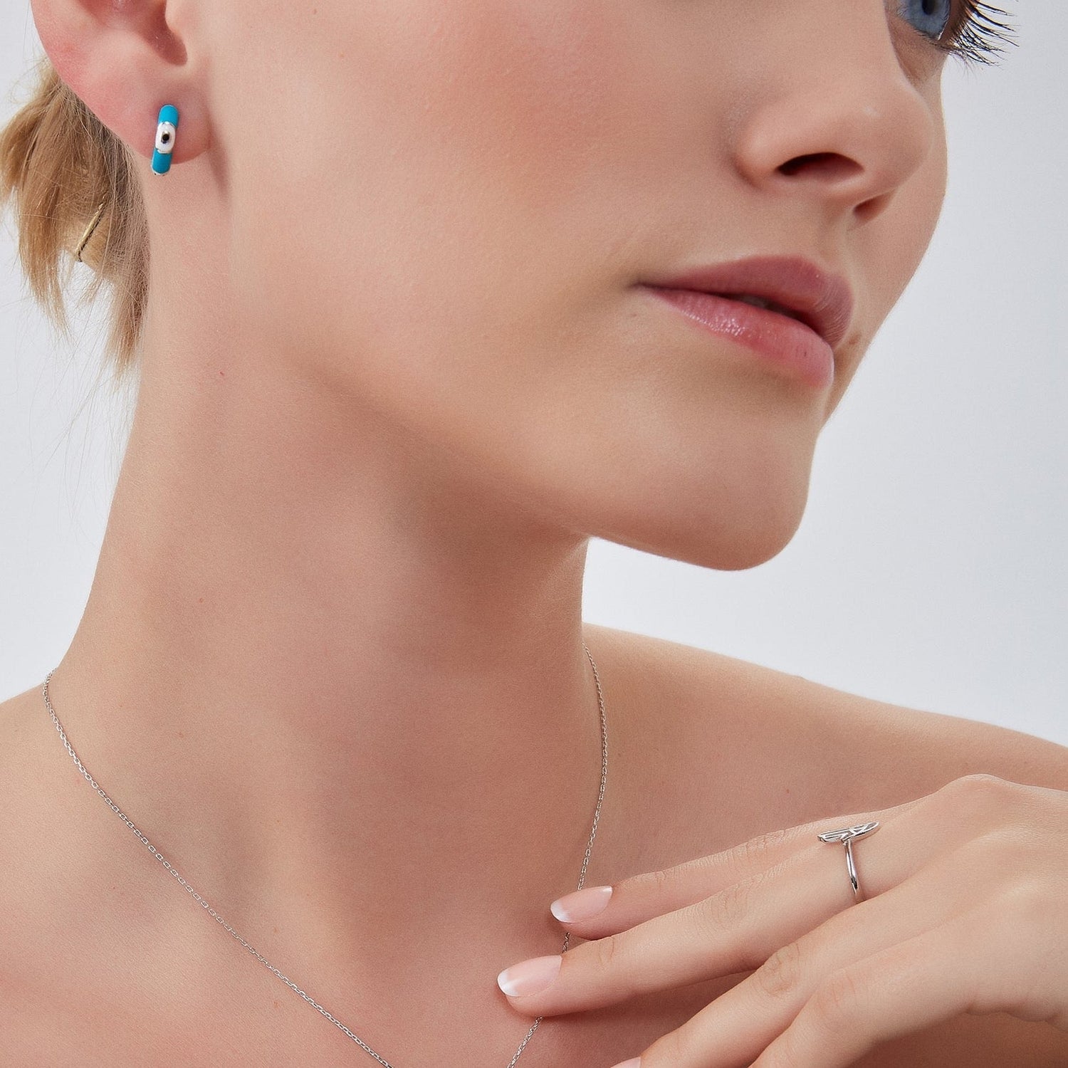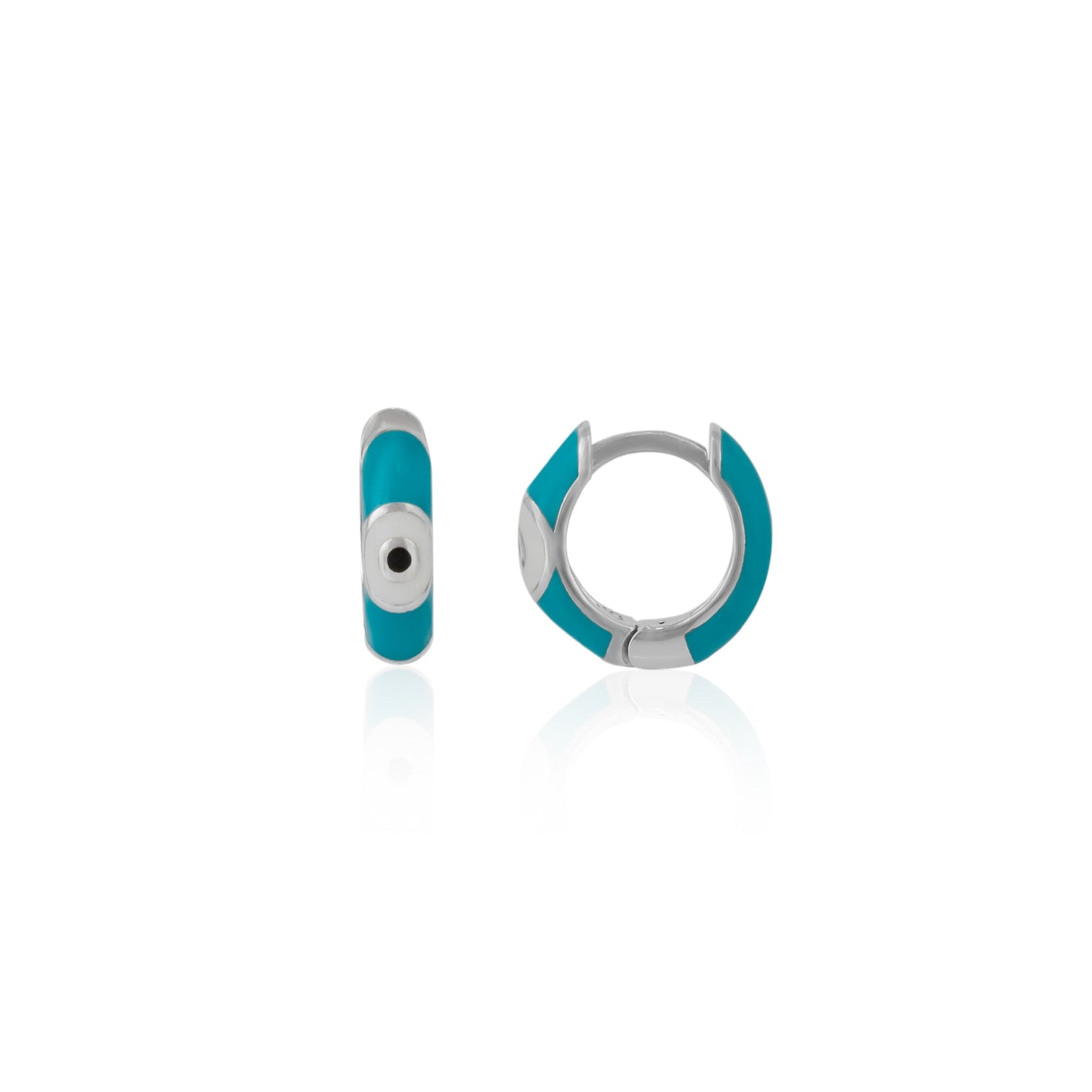 Turquoise Enamelled Jewelled Eye Sterling Silver Huggie Hoop Earring