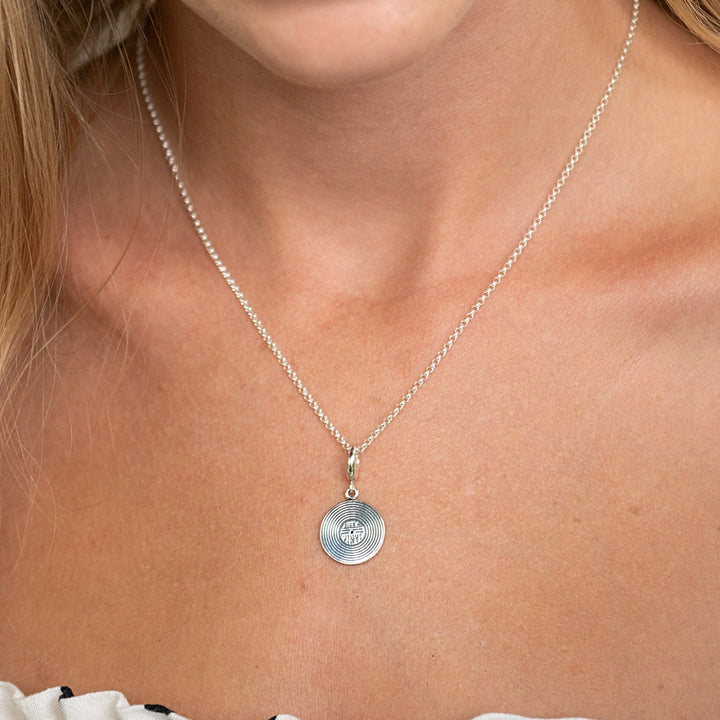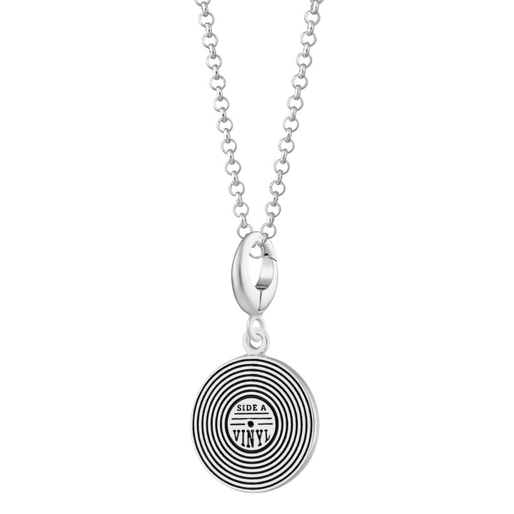 This Sterling Silver Vinyl Record Charm Necklace by Lily Charmed is a nostalgic nod to retro music culture. The double-sided record pendant, detailed with grooves and a label center, captures the joy of dancing and disco days. A perfect keepsake for music lovers, it adds rhythm and character to any jewelry collection, evoking treasured memories of vinyl’s golden era.