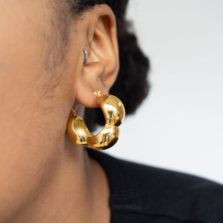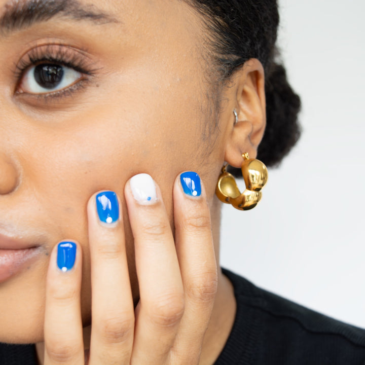 These earrings are crafted from 18k silver-plated, tarnish-free, hypoallergenic stainless steel. They are also available in gold plating.