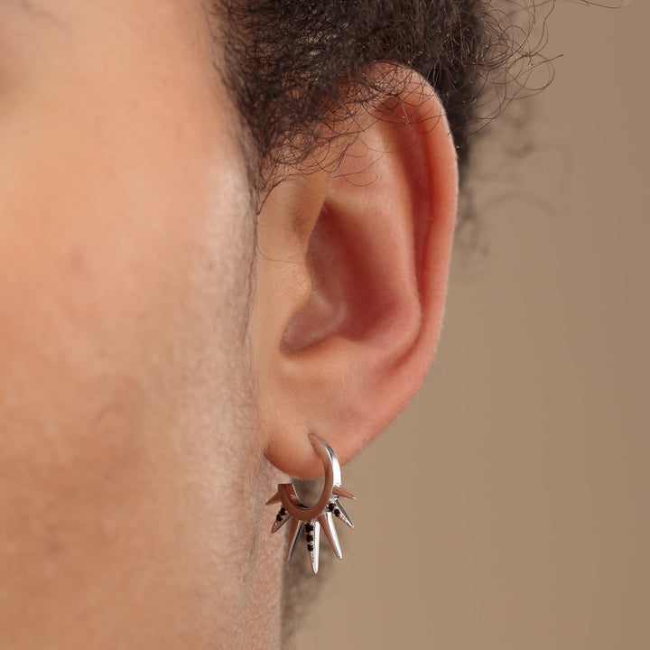 Silver Black Sun Spike Hoop Earrings