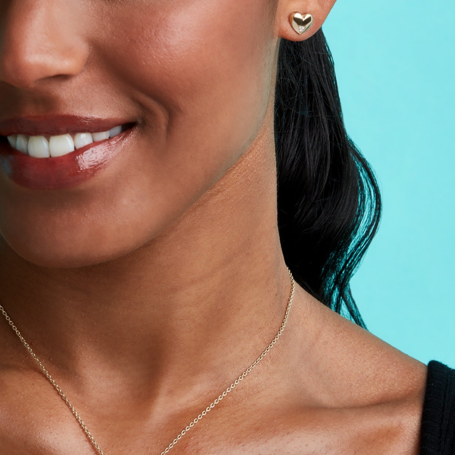These studs are made from recycled 925 sterling silver with 3 microns of 18k gold plating and features a cubic zirconia pavé.