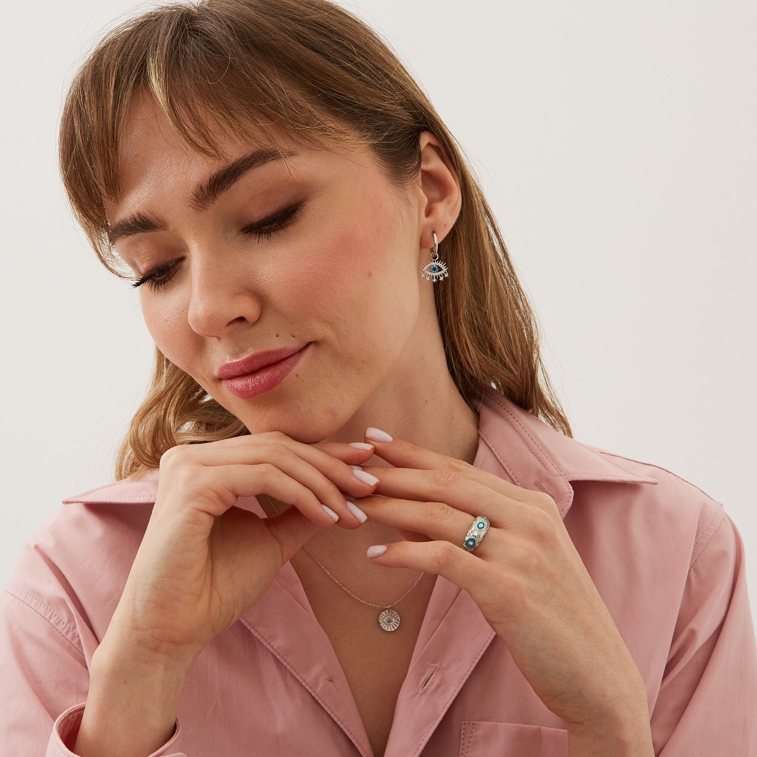 Natural Textured Sterling Silver Evil Eye Ring - Silver