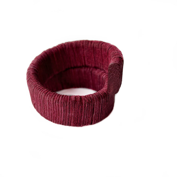 This Burgundy Leather Wrap Bracelet by Waiwai redefines elegance through simplicity. Handcrafted from upcycled leather in a rich, deep burgundy, its seamless, wraparound design offers a balance of texture and boldness. Lightweight yet durable, this bracelet effortlessly adapts to any style, from casual to refined. Each piece tells a story of sustainability, turning discarded materials into timeless artistry.