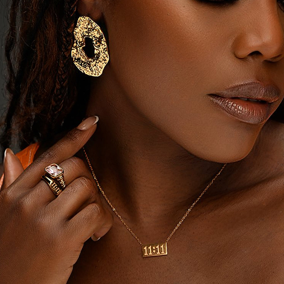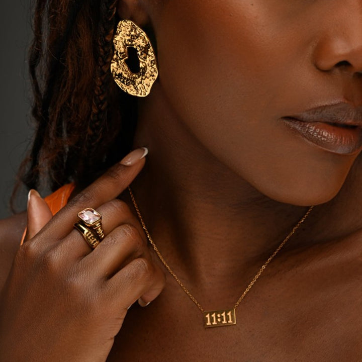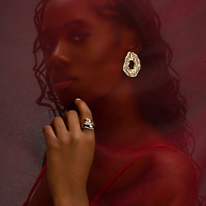 These Theia Gold Hoop Earrings by Superdivajewellery are a bold and elegant accessory. The large, 18k gold plated stainless steel hoops are lightweight and tarnish-free. Each piece has a unique detailed craftsmanship, making it a special accessory for those who appreciate unique and luxurious style.