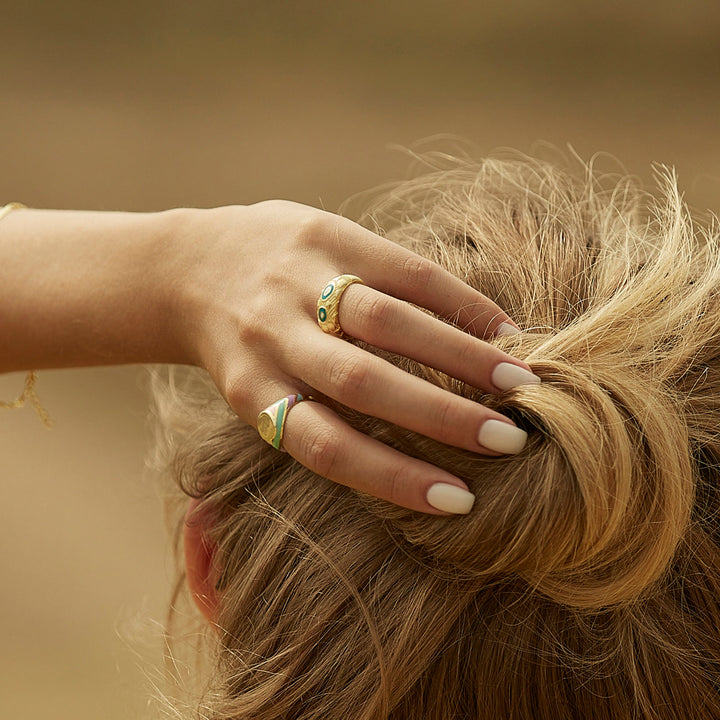 Natural Textured Sterling Silver Evil Eye Ring - Gold