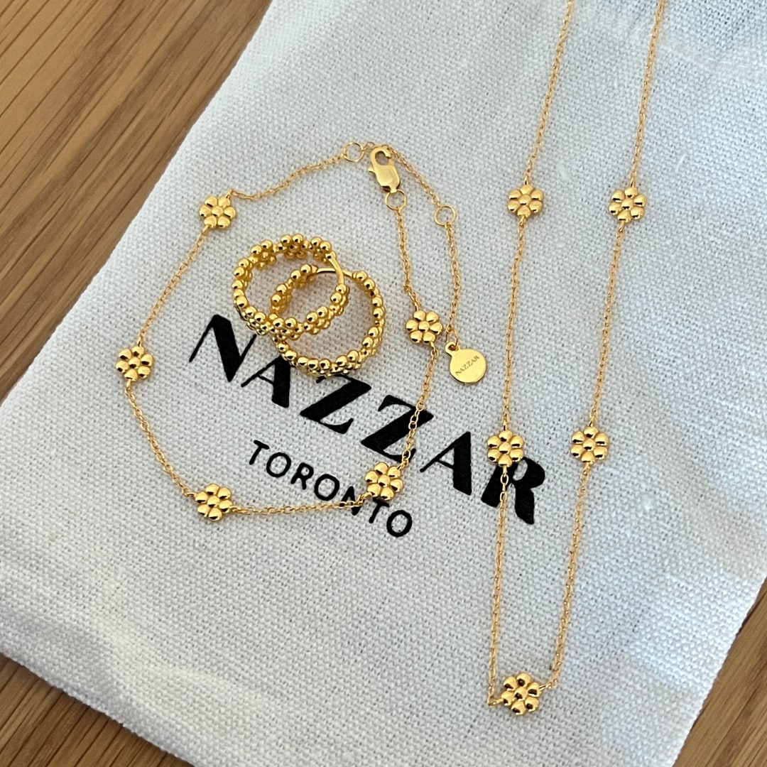 Nazzar is a contemporary online jewelry brand founded in April 2020 in Toronto, Ontario, specializing in gold-plated jewelry. Since its launch, the brand has served customers globally and earned a reputation for quality and customer satisfaction. Nazzar only works with trusted manufacturers, using carefully selected materials such as 925 sterling silver, brass alloy, stainless steel, and AAA cubic zirconia crystals. Each piece is designed with a minimalist aesthetical touch for the modern muse.