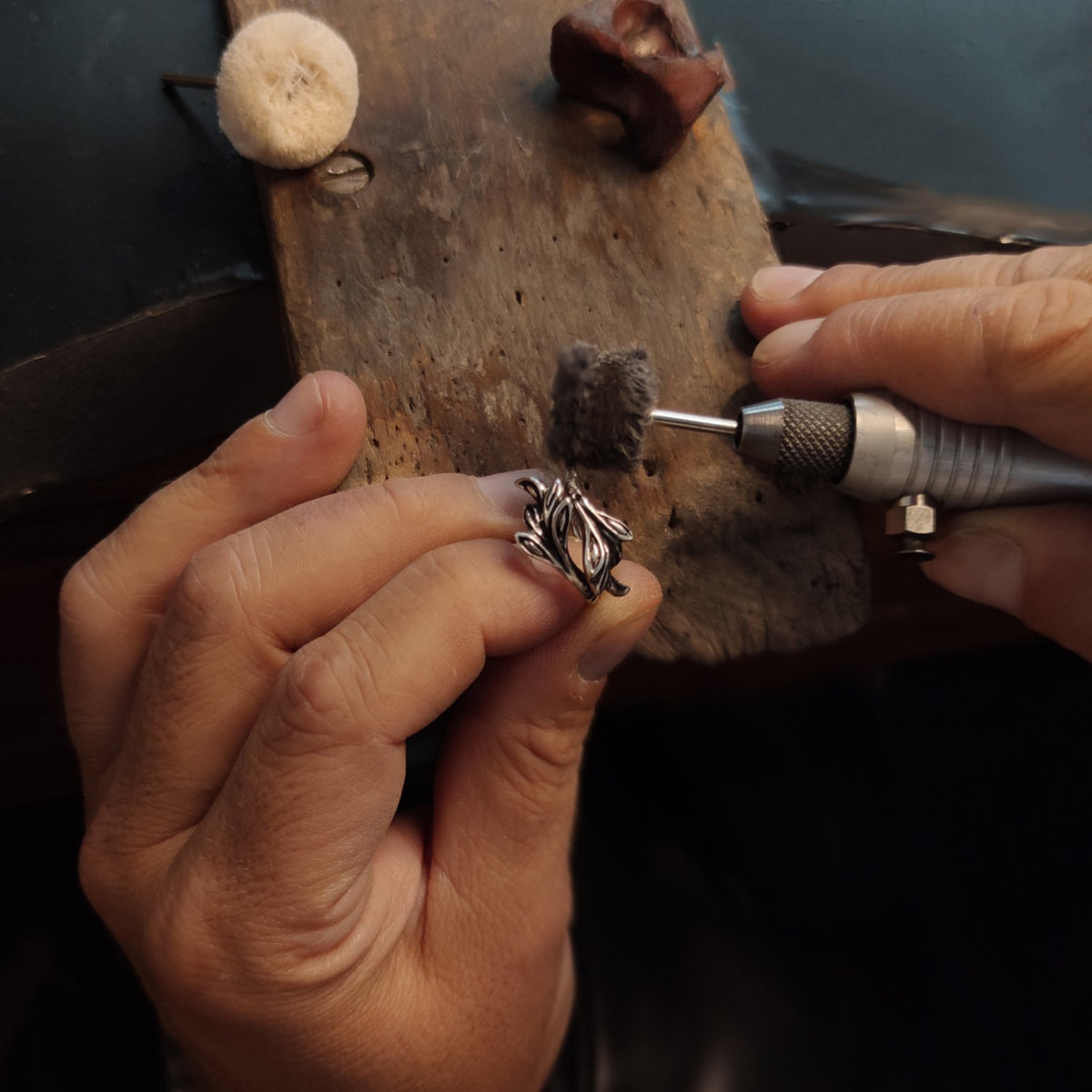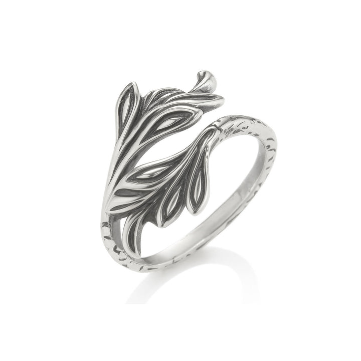 This Santafè Ring by Unaloe is inspired by the natural elegance of intertwining leaves, symbolising vitality and renewal. Adjustable for comfort, it is handcrafted with the antiquing technique, which lends depth and character through a subtle dark patina. A modern homage to timeless natural motifs, this piece carries artisanal authenticity and organic beauty.