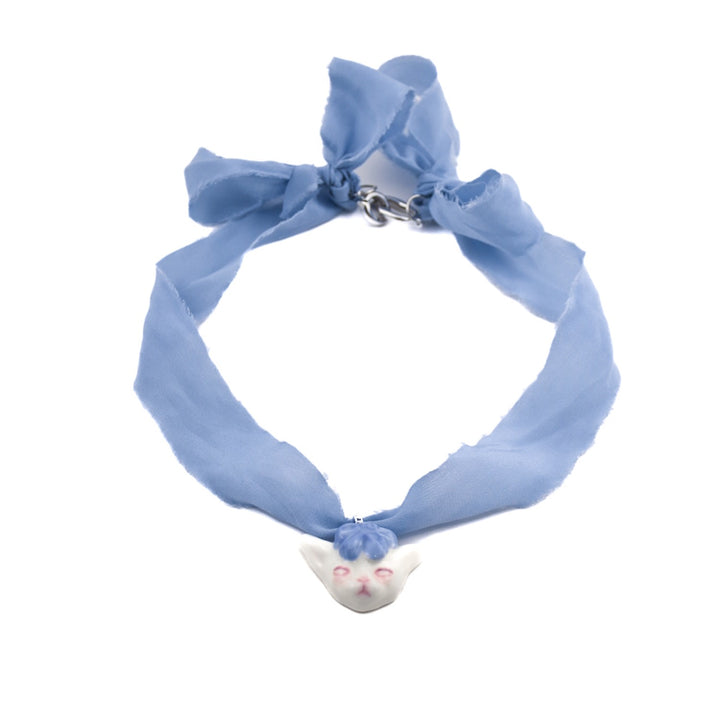 Angry Puss Blue Silk Necklace Purple Blue Bowtie