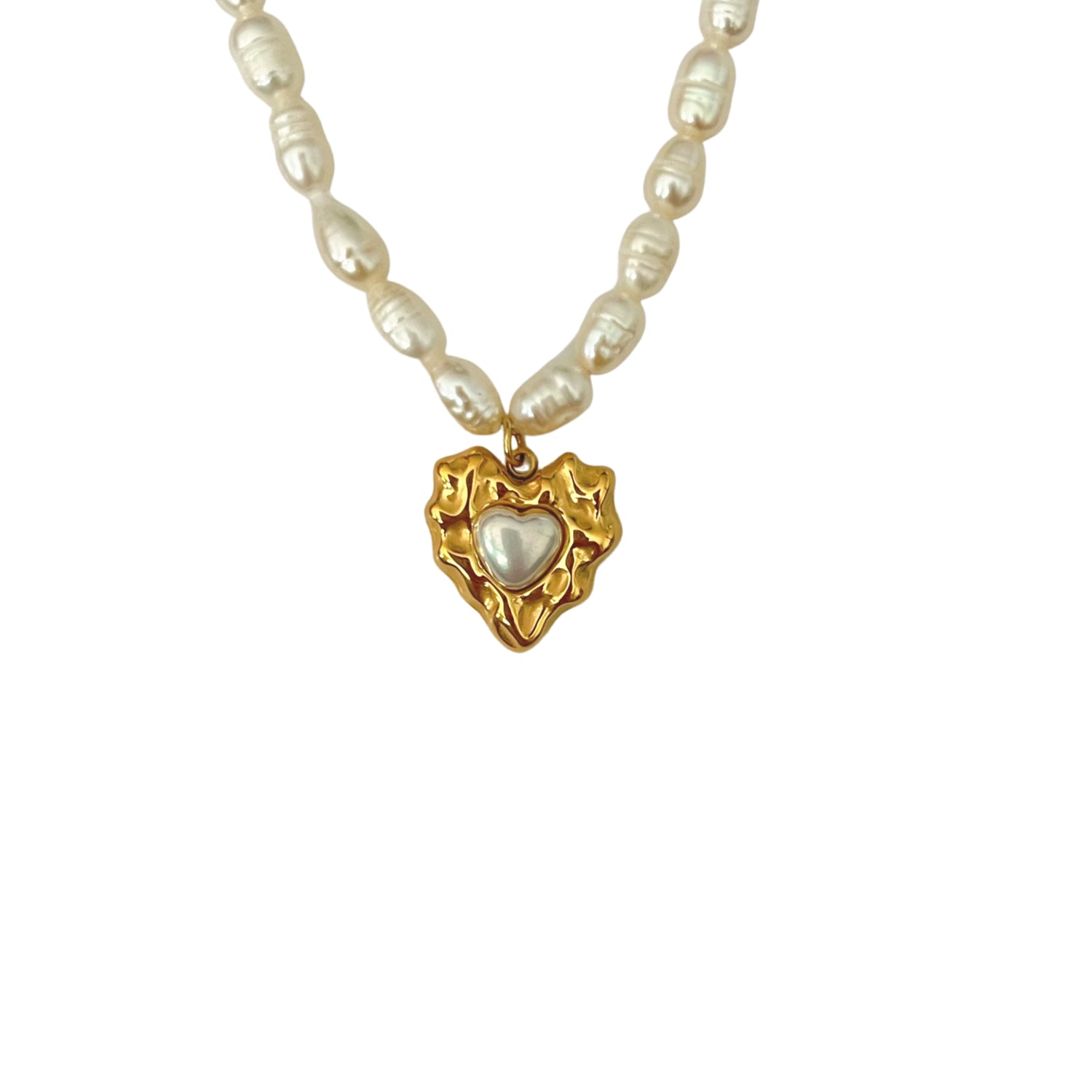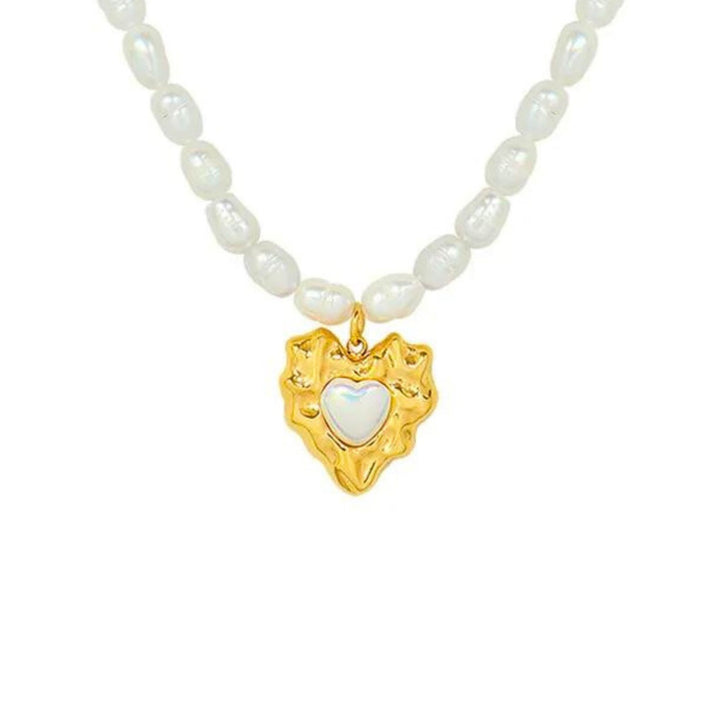 This Baroque Gold Heart Pearl Necklace by Nazzar is a timeless and romantic accessory. It features a lustrous freshwater pearl gracefully suspended from a delicate heart-shaped pendant. This exquisite necklace, made with a brass base and a thick layer of high-quality 18k gold plating, is perfect for adding a hint of sophistication and love to your look. It is also waterproof, tarnish-free, and hypoallergenic.