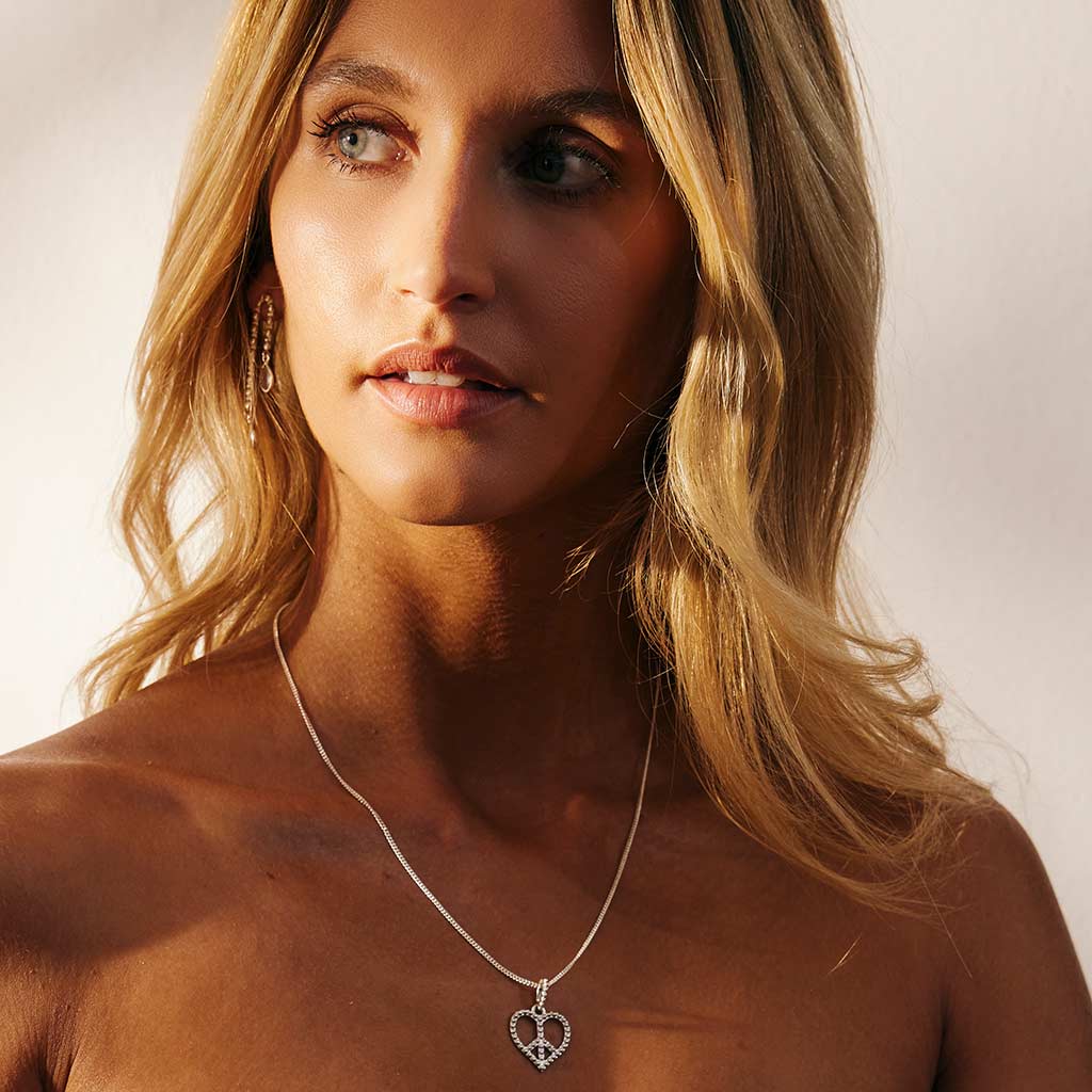 Peace Heart Silver Pendant Necklace