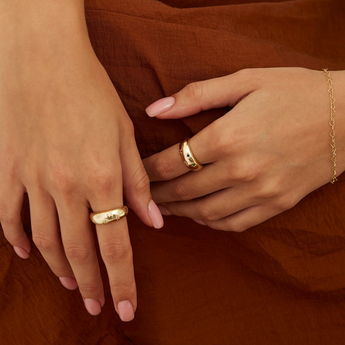 Celestial Sterling Silver Dome Ring With Rainbow Stones - Multicolour