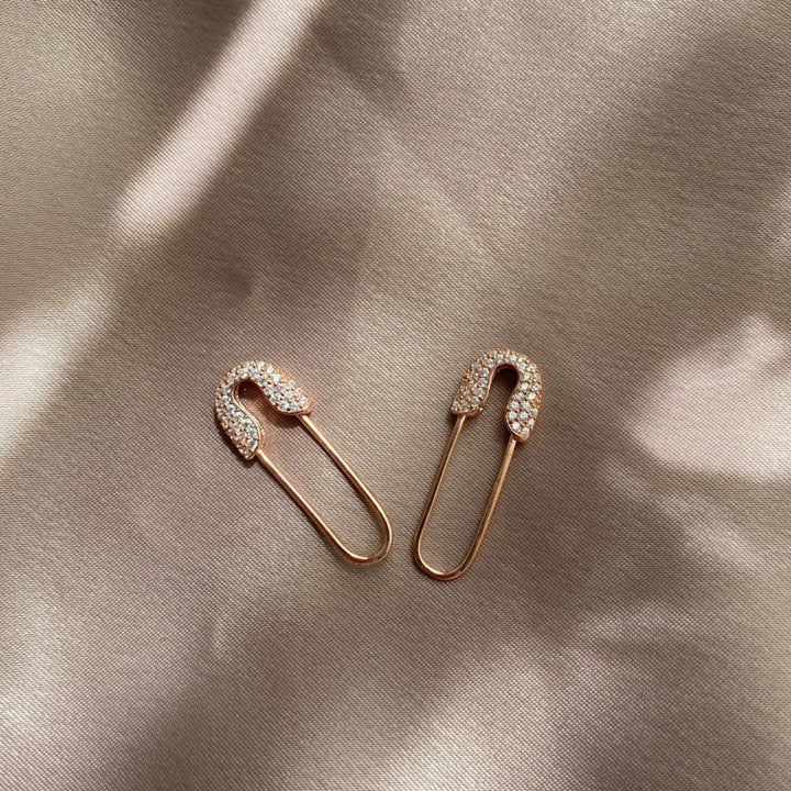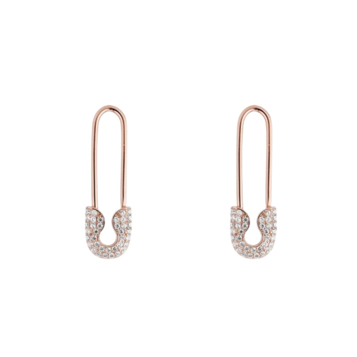 Pave Safety Pin Earrings Jewelled Sterling Silver - Rose Gold
