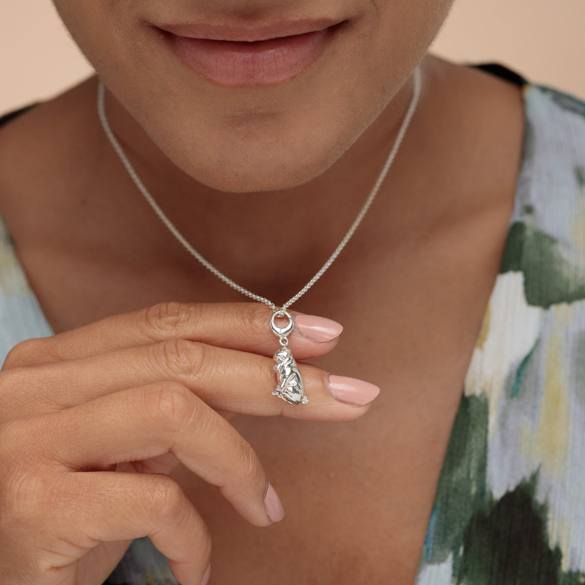 This necklace is made from Recycled 925 Sterling Silver and the charm is plated with Rhodium. The charm has a clip-on clasp for easy use.