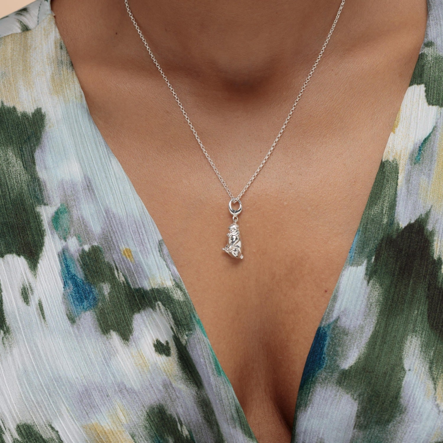 Sterling Silver Pug Charm Necklace by Lily Charmed is an adorable and beautifully detailed accessory for any dog lover. The charm highlights the lovable nature of the pug, from its recognizable face to the bow tie detailing, making it a charming little companion. This piece is perfect for bringing joy to any animal enthusiast.