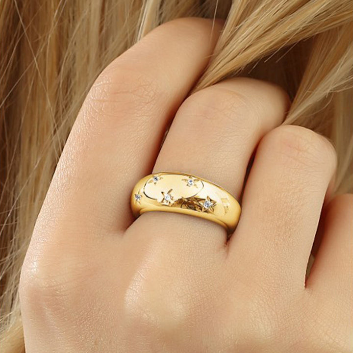 Celestial Star Sterling Silver Dome Ring With White Stones
