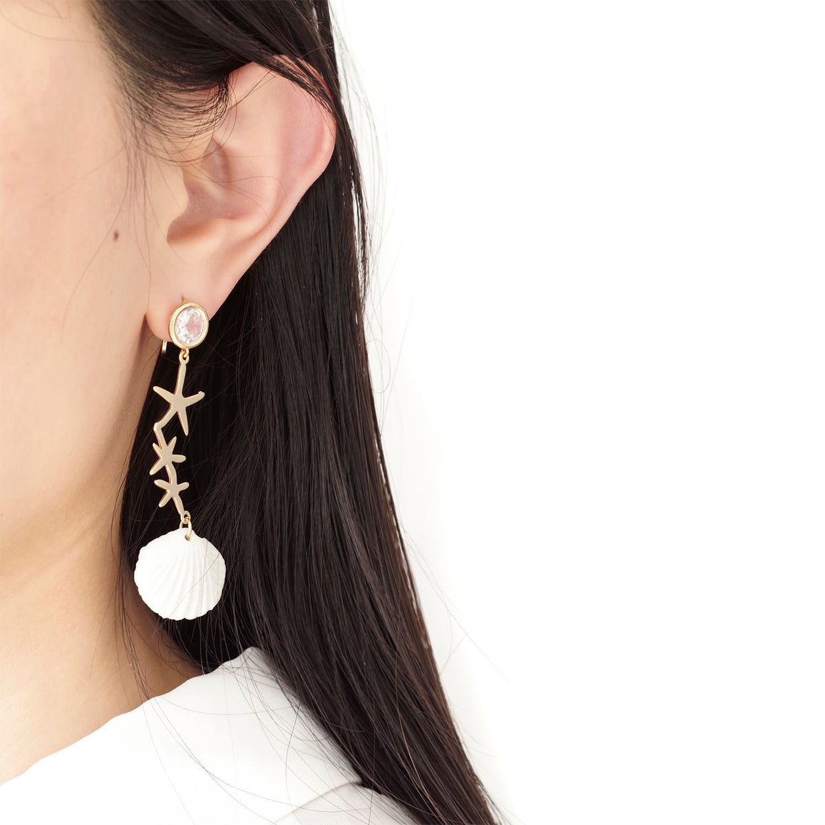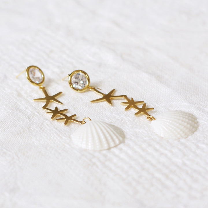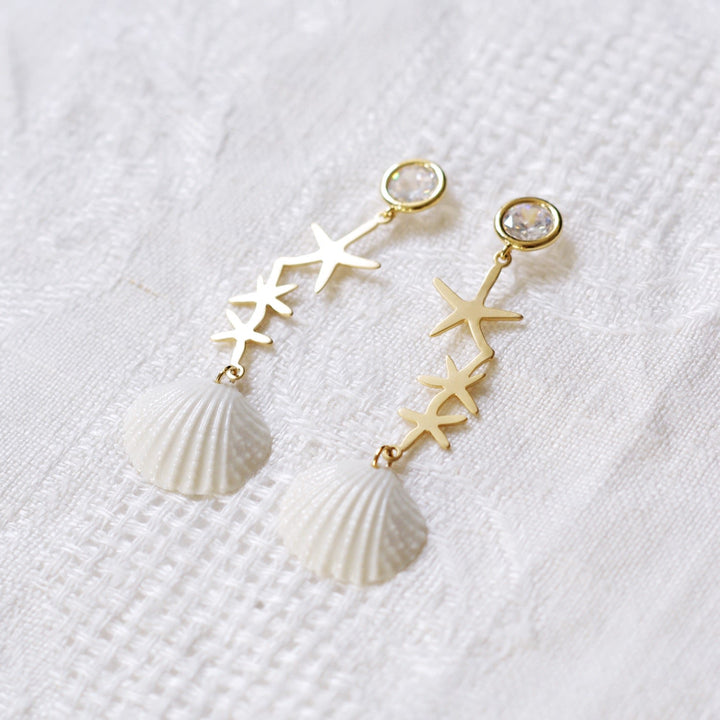 Crystal Star Porcelain Seashell Earrings
