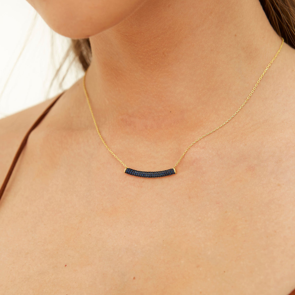 Sterling Silver Concave Bar Necklace - Navy Blue - Gold