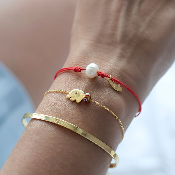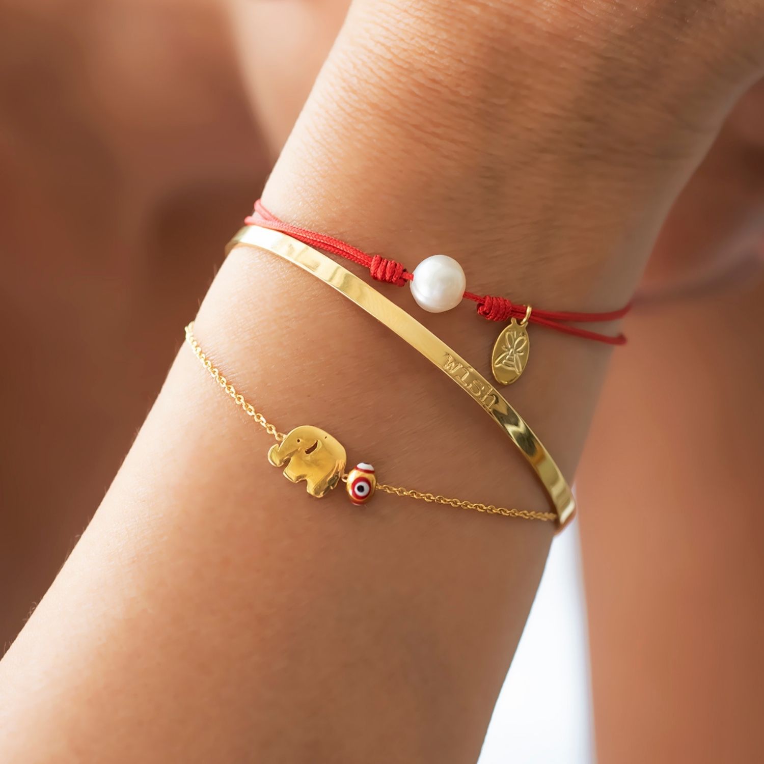 This "Wish" Cuff Bracelet by Atelier Petites Pierres is a piece designed for both style and meaning. Elegantly inscribed with the word "Wish," it serves as a beautiful reminder to hold your intentions close. The delicate evil eye beads at the back closure symbolize protection and positivity, adding a layer of deep meaning to this elegant piece. Perfect for daily wear, this bracelet blends timeless elegance with a touch of inspiration, making it a thoughtful gift or a personal treasure.