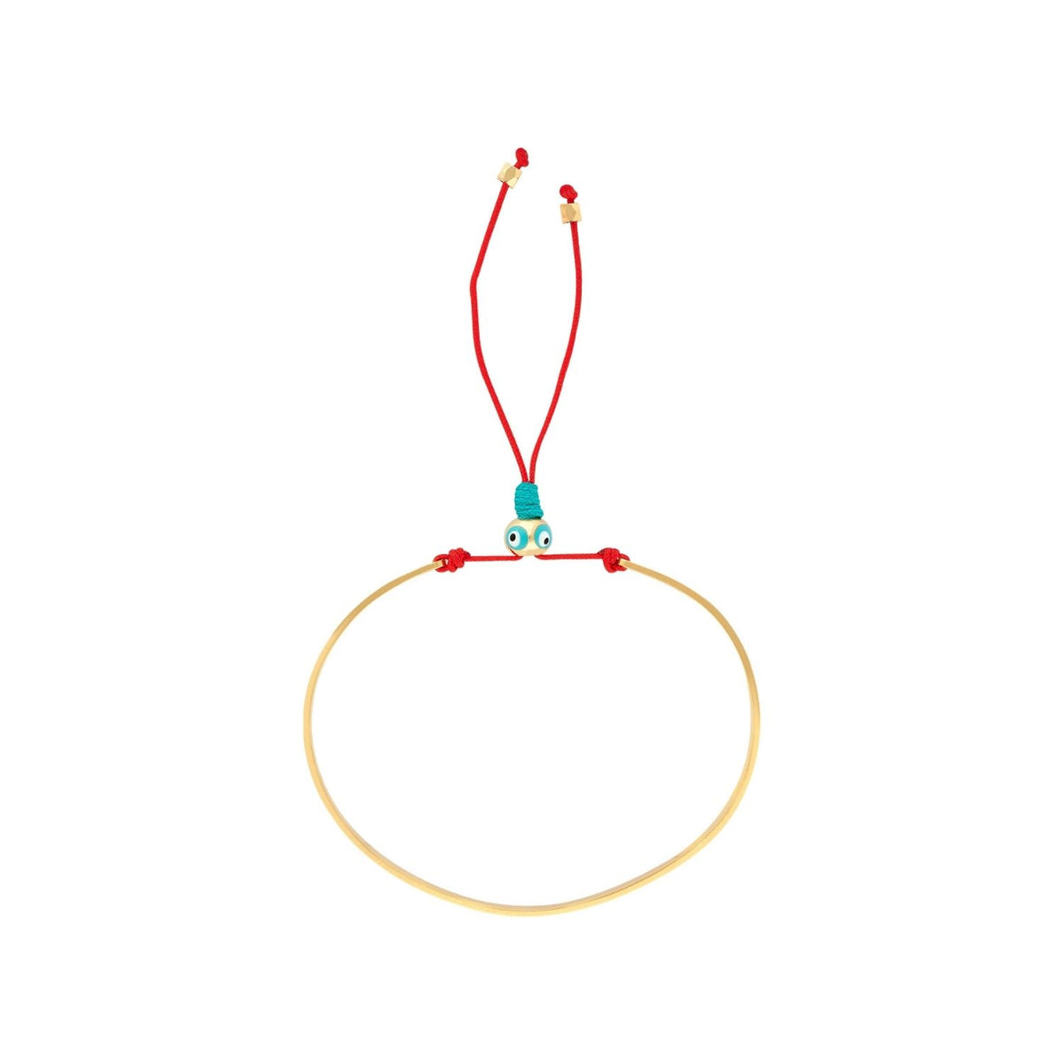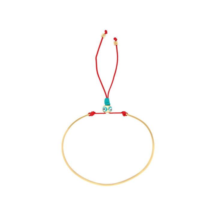 This cuff bracelet is made from 24K gold-filled brass and is accented with delicate evil eye beads at the back closure.