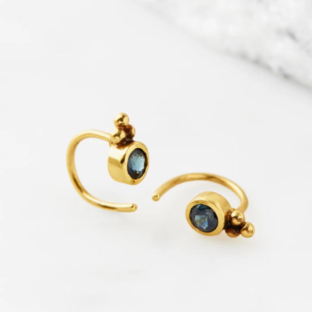 These Holi Jewel Gold Vermeil Stud Hoop Earrings by Charlotte's Web Jewellery are a charming and luxurious accessory inspired by the happy colors of the Holi festival. These handcrafted stud hoop earrings are enhanced with stunning sapphire, a stone of wisdom that helps relieve tension. The gold vermeil finish adds a timeless elegance, making them a beautiful gift or a cherished piece to add a touch of luxury and clarity to your daily life.