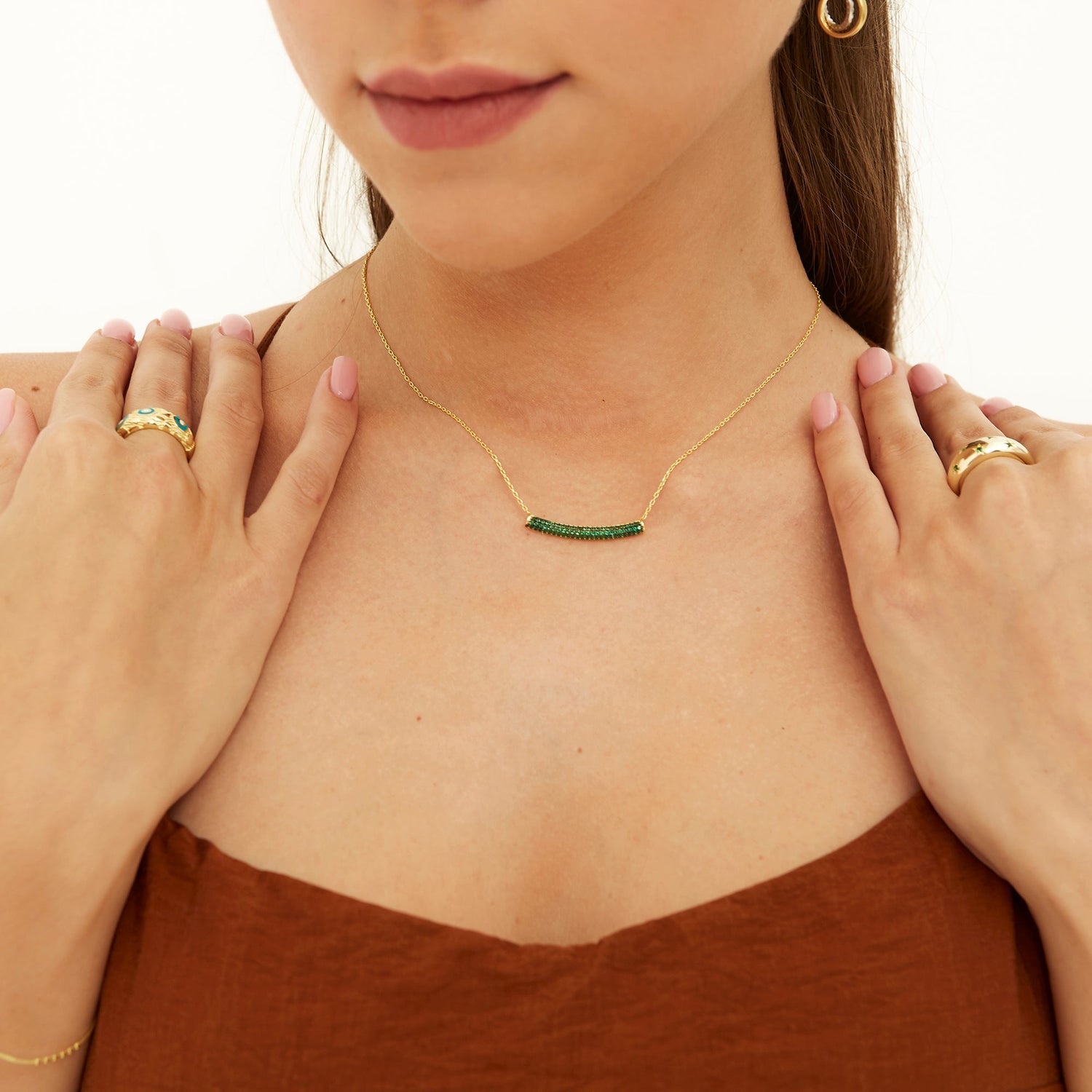 Sterling Silver Concave Bar Necklace Green - Gold
