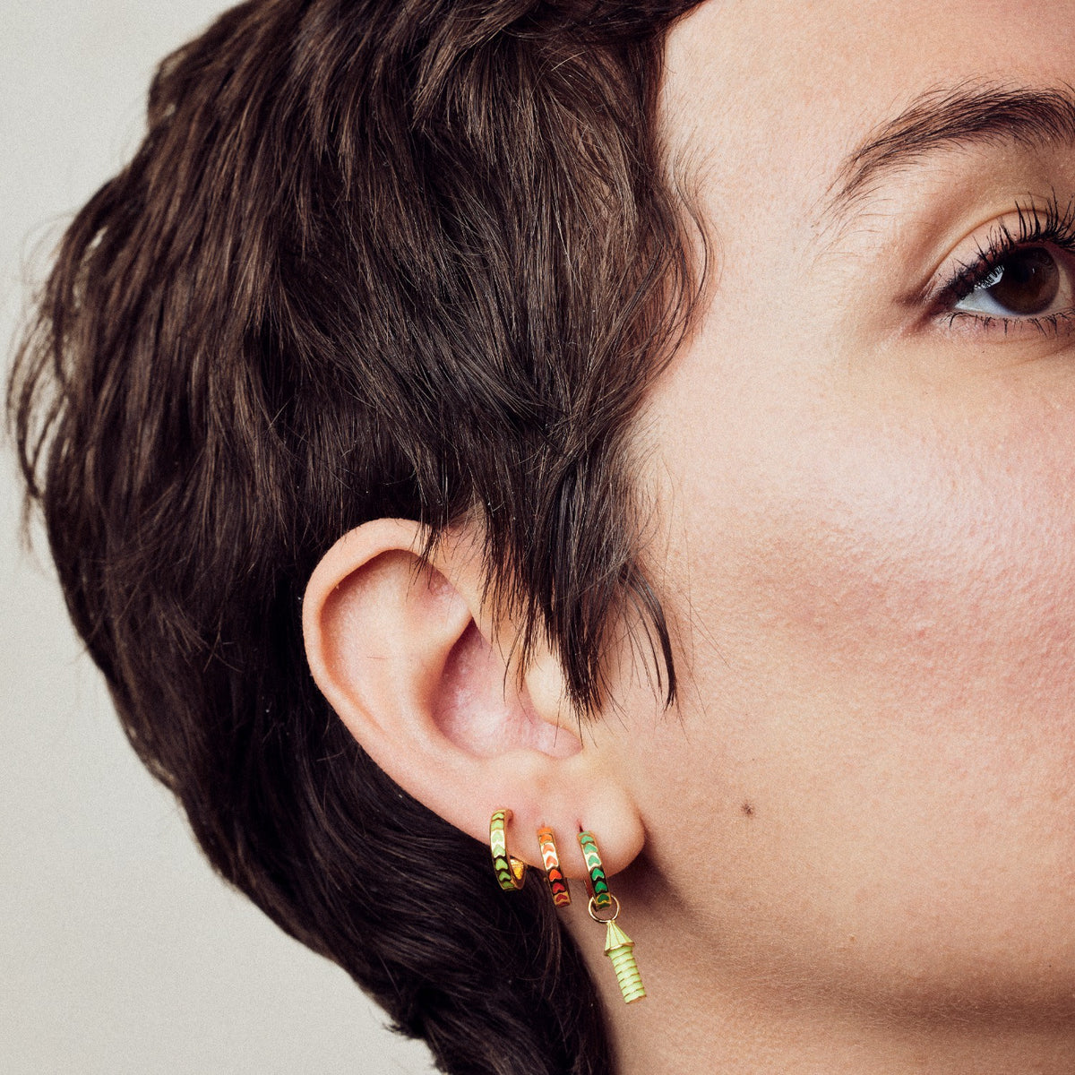 These Spark Mini Hoop Earrings by Après Youth are designed to make a vibrant and playful statement. The sleek mini hoop silhouette is elevated by a striking pop of neon yellow enamel, creating a modern, graphic look that's perfect for a contemporary style. The clean lines and bold color make them a versatile piece, ideal for adding a touch of edgy personality to any outfit or for creating an eye-catching, layered ear stack. These earrings are a symbol of effortless confidence and youthful energy.