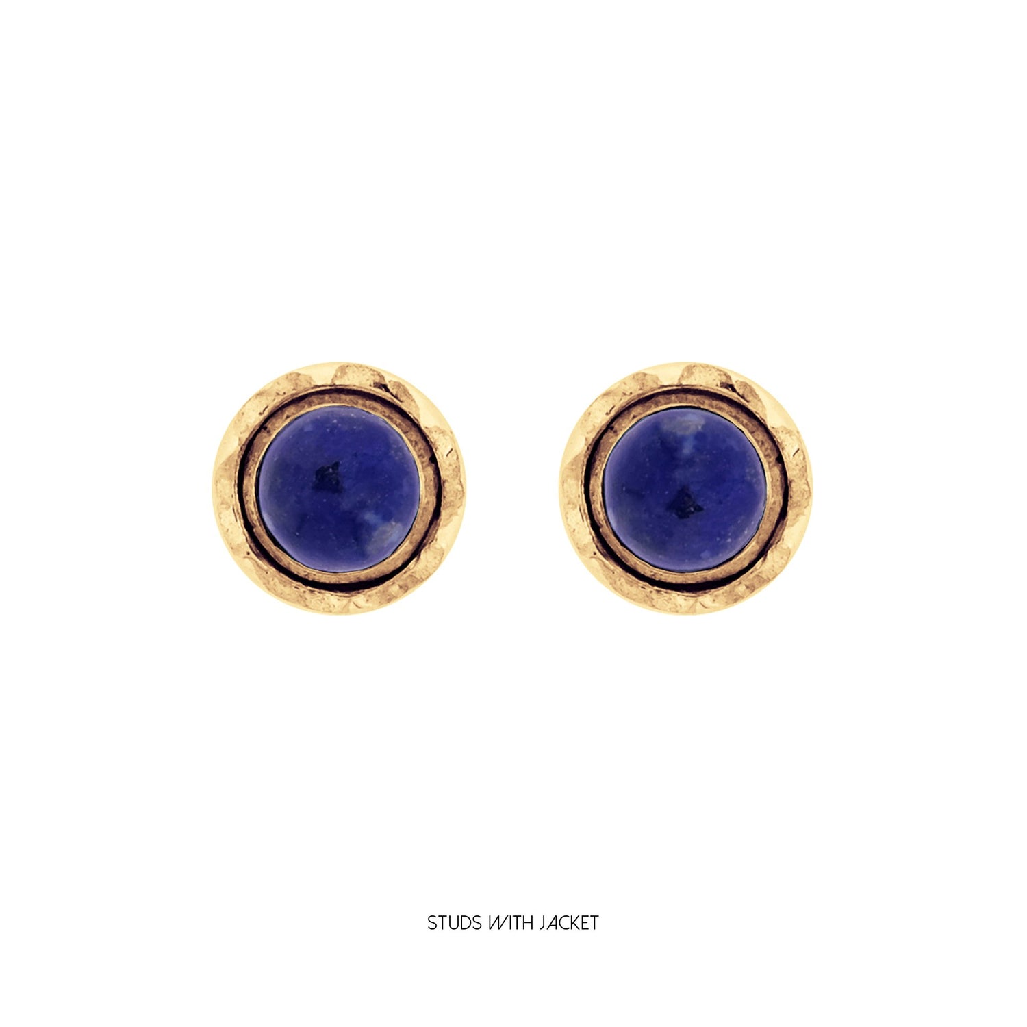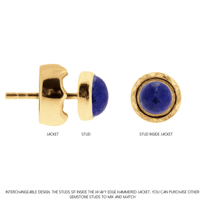 Gold vermeil-plated sterling silver jackets with cabochon lapis lazuli studs (0.6cm). Hypoallergenic, nickel-free posts and butterfly backs. Handmade.
