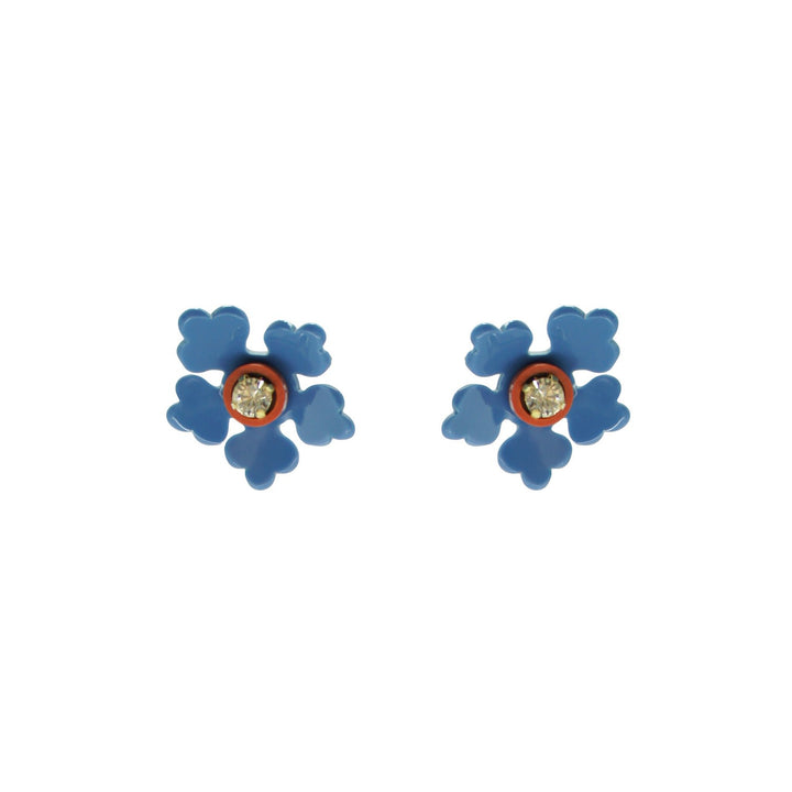 These Acrylic Handmade Earring Kit Flower - Blue by Gissa Bicalho are a versatile and artistic accessory. The "Brinco de Flores Kit" (Flower Earrings Kit) features a flower-shaped design that can be used with or without the petal module. They are handmade from acrylic, glass, and metal rhinestones with a golden finish. The unique design allows for two different looks in one piece.