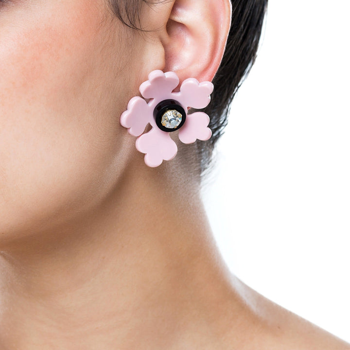 These Acrylic Handmade Kit Flower Earrings - Pink & Purple by Gissa Bicalho are a beautiful and versatile expression of nature's artistry. Made from acrylic with glass rhinestones, their design allows for multiple styling options, bringing a unique and playful charm to your look. The vibrant pink and purple tones make these earrings a joyful and bold accessory, perfect for adding a pop of color to any outfit.
