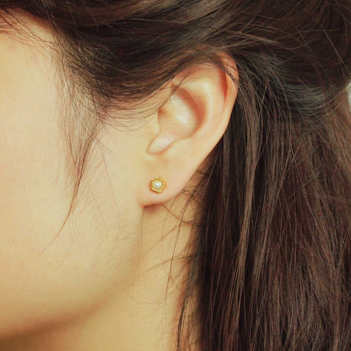 These Flower Power Gold Vermeil And Freshwater Pearl Stud Earrings by I'mmany London are a playful and sophisticated take on a classic stud. The delicate floral shape, with a lustrous freshwater pearl at the center, adds a charming touch of nature-inspired beauty. These earrings are super comfortable and versatile, perfect for mixing and matching.