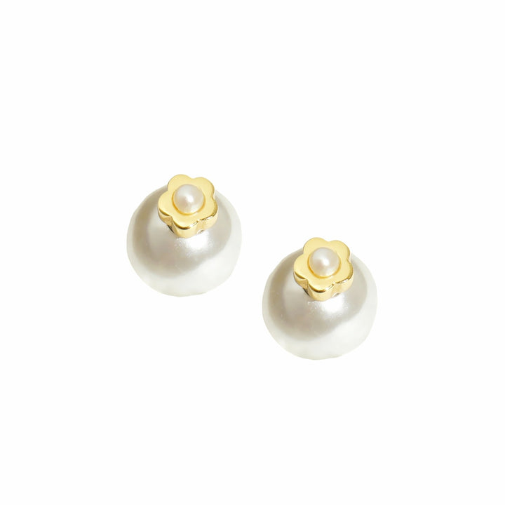 Crafted from 18k gold vermeil on sterling silver, these stud earrings feature a freshwater pearl at the center.