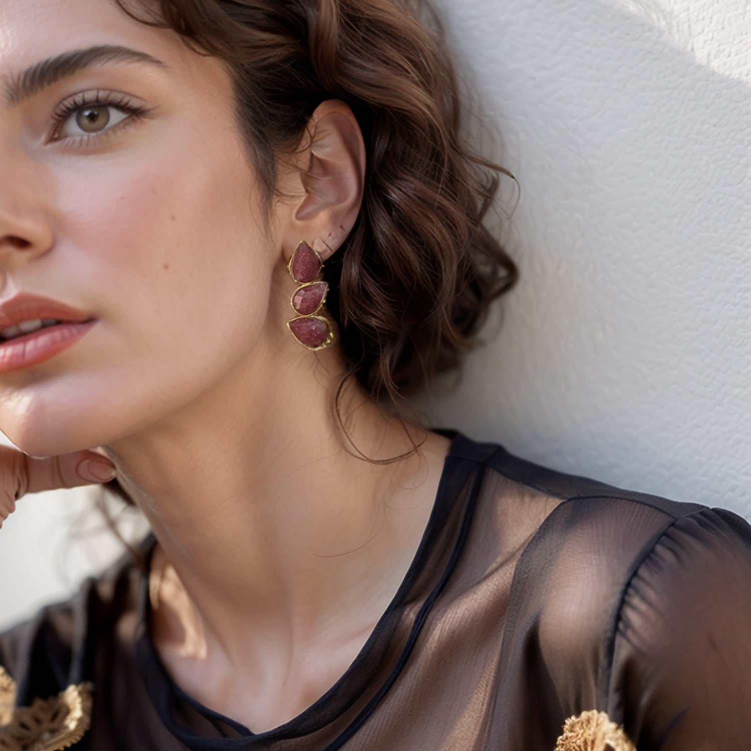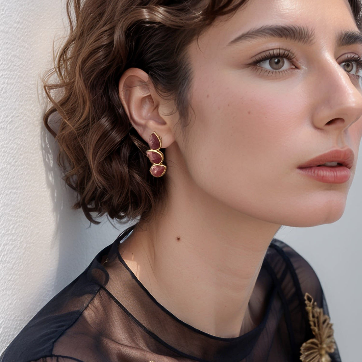 These stud earrings are crafted from strawberry quartz with a sterling silver or gold-plated setting.