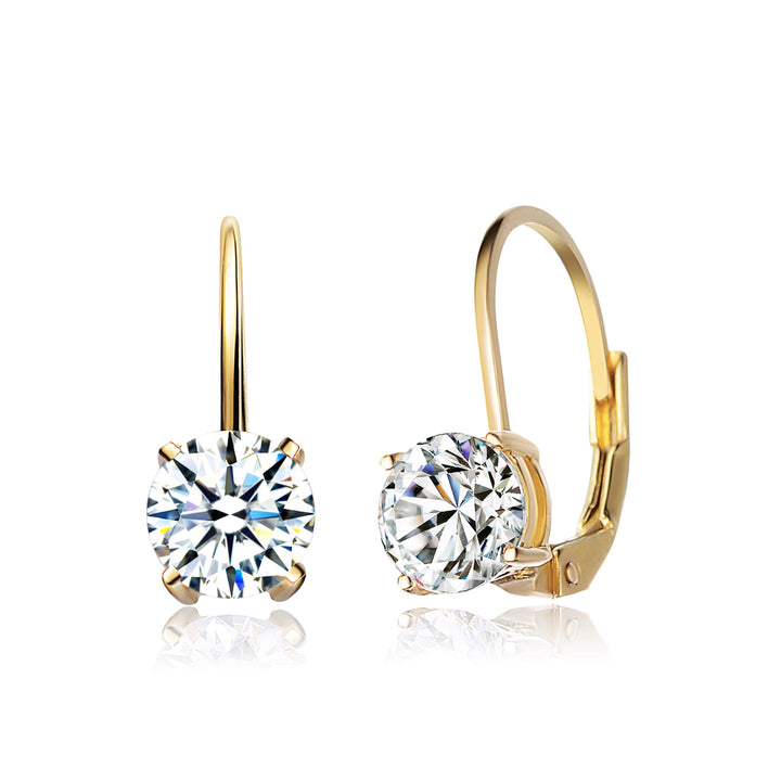 Sterling Silver Gold Plated Cubic Zirconia Classic Leverback Earrings