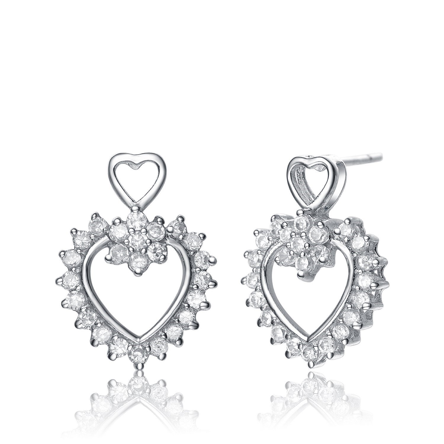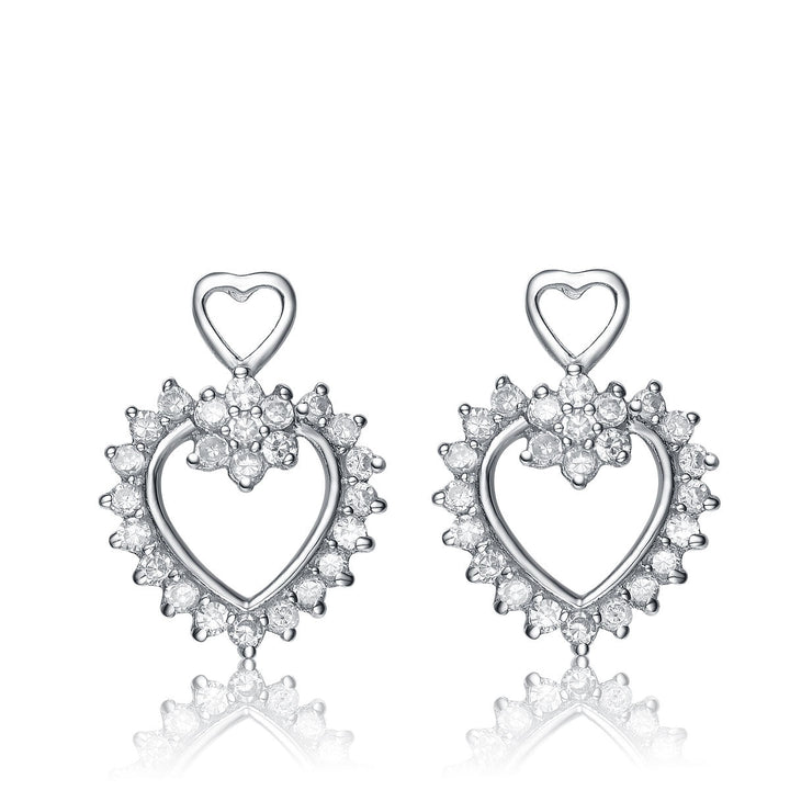Sterling Silver Cubic Zirconia Double Open Heart Earrings