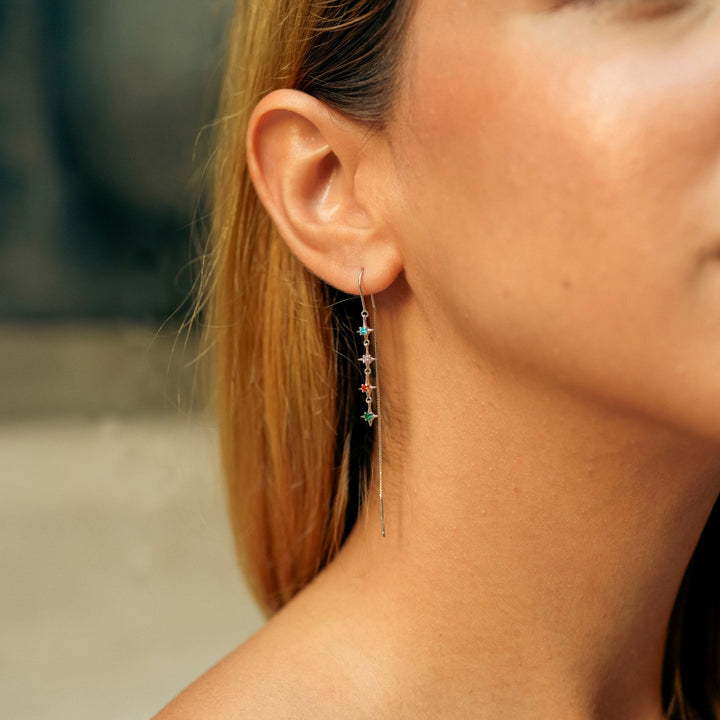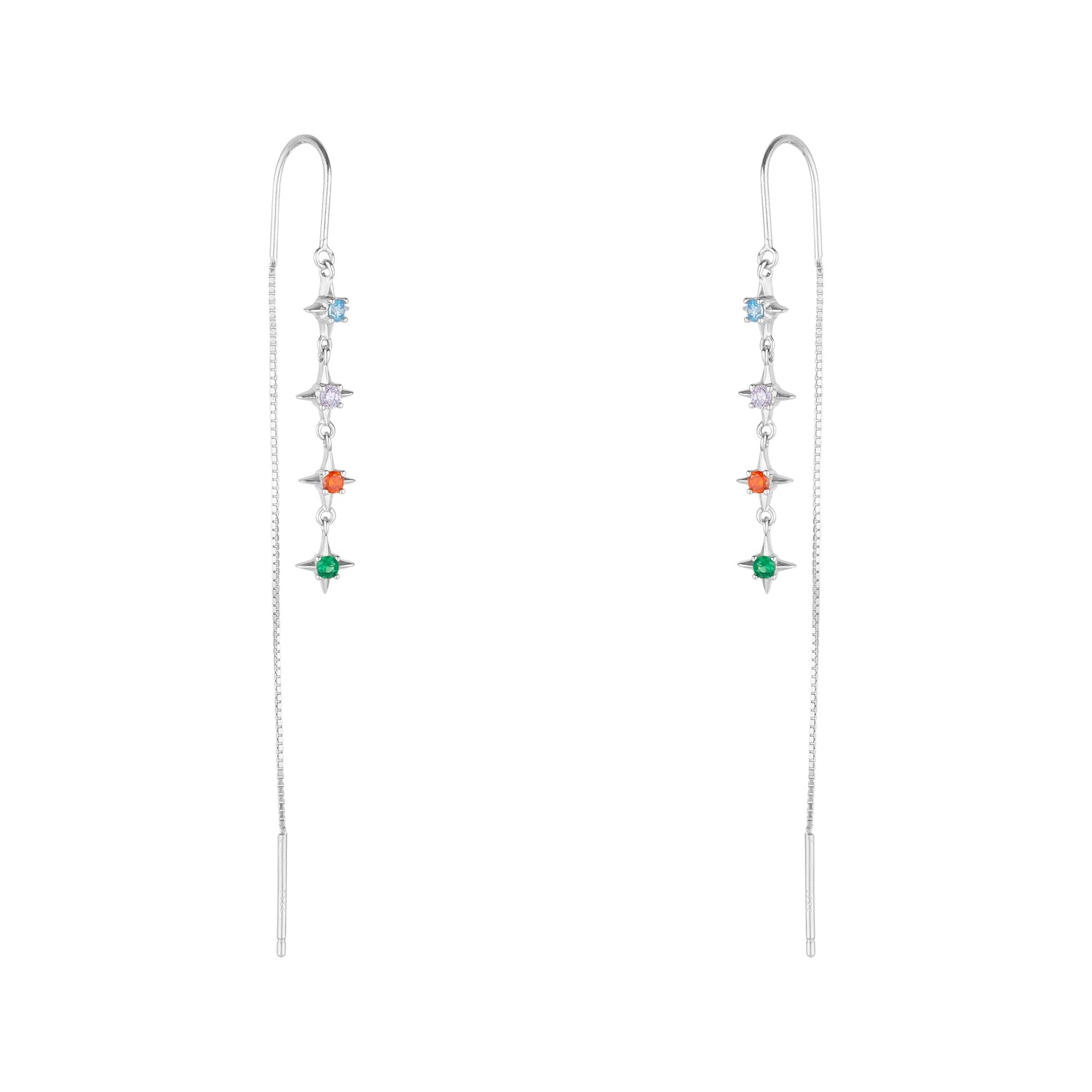 Multicolour Star Drop Sterling Silver Chain Threader Earrings - Pair