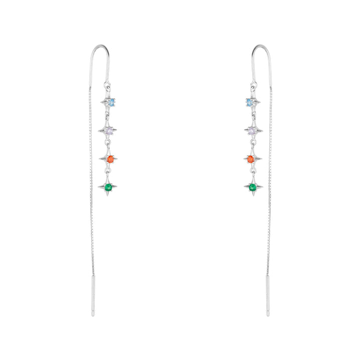 These threader earrings are crafted from 100% fine sterling silver and feature multicolour star charms. They are sold as a pair.