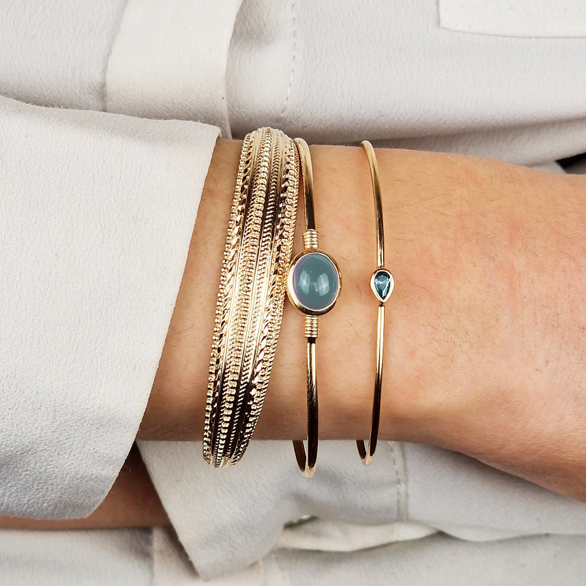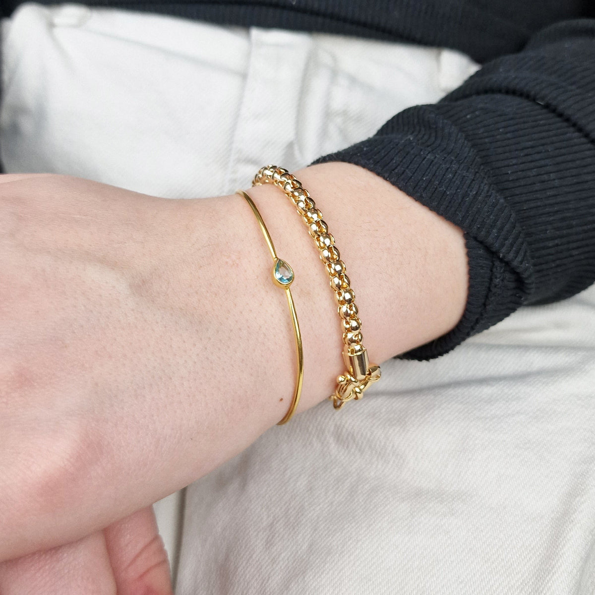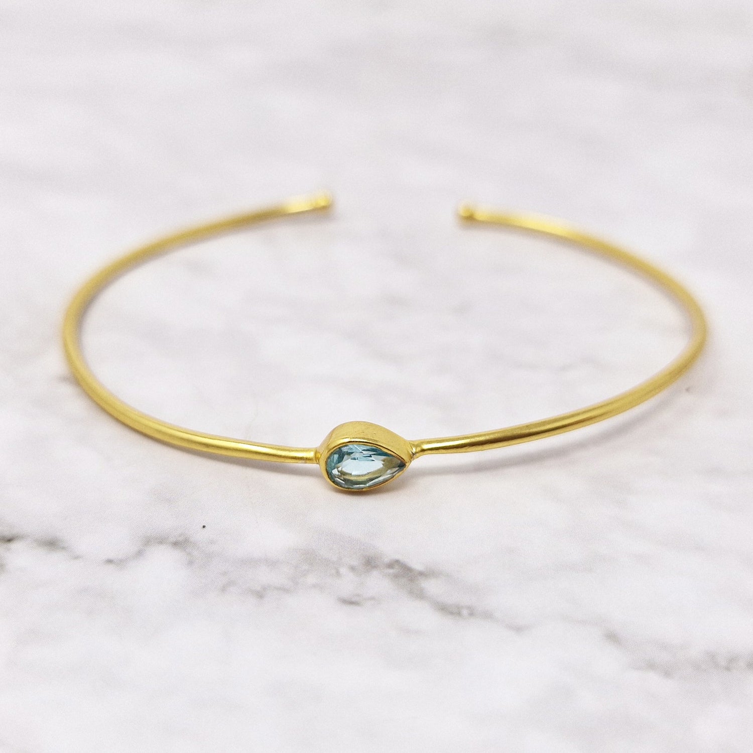 Gold-plated bangle set with genuine aquamarine (March birthstone). Handmade with high-quality materials.