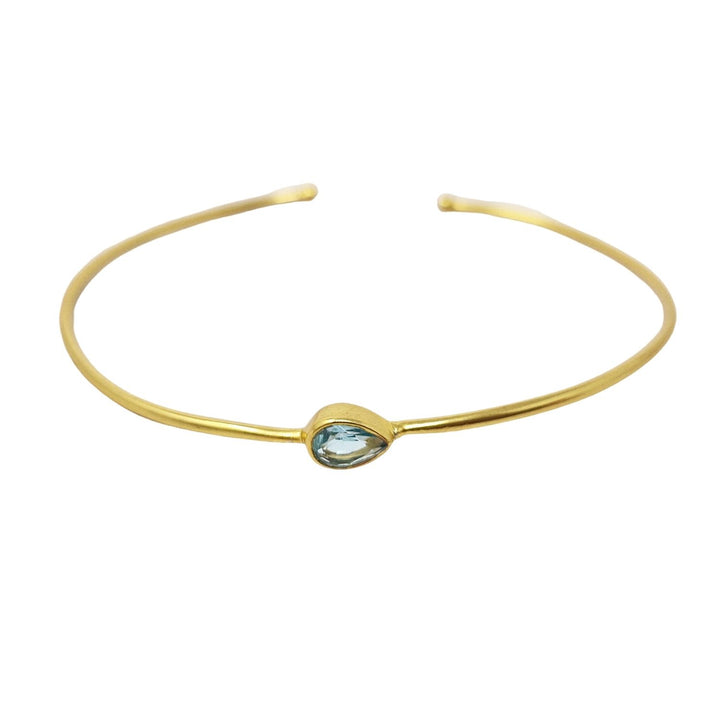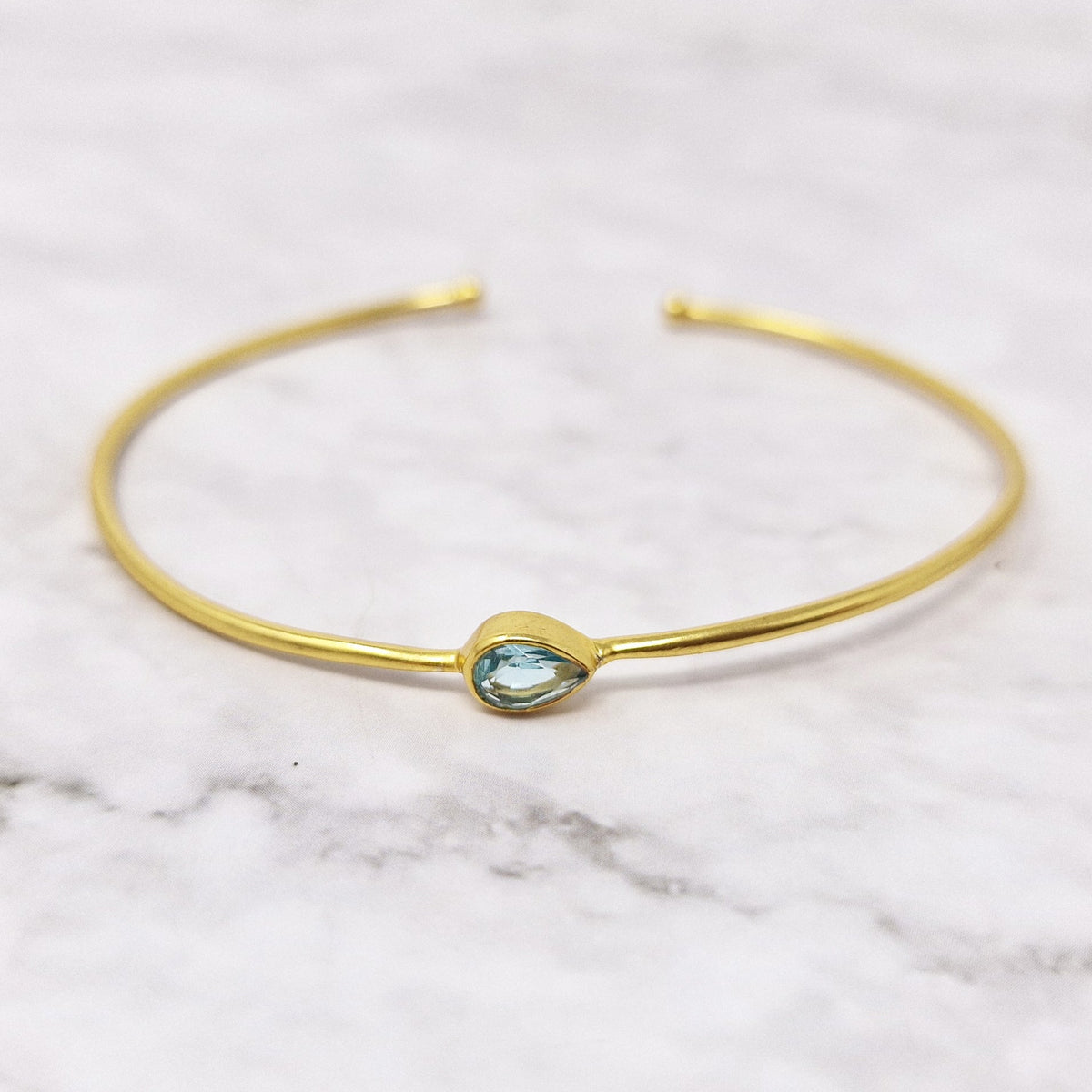 The Gold Plated Aquamarine March Birthstone Crystal Bangle by Harfi embodies serenity, courage, and clarity. Featuring a genuine aquamarine teardrop, this bangle celebrates March birthdays with elegance and symbolic meaning. A thoughtful and timeless gift, crafted for lasting beauty.