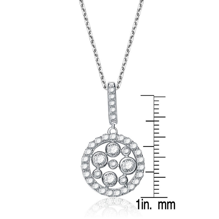 Sterling Silver White Gold Plated With Round Cubic Zirconia Drop Pendant Necklace