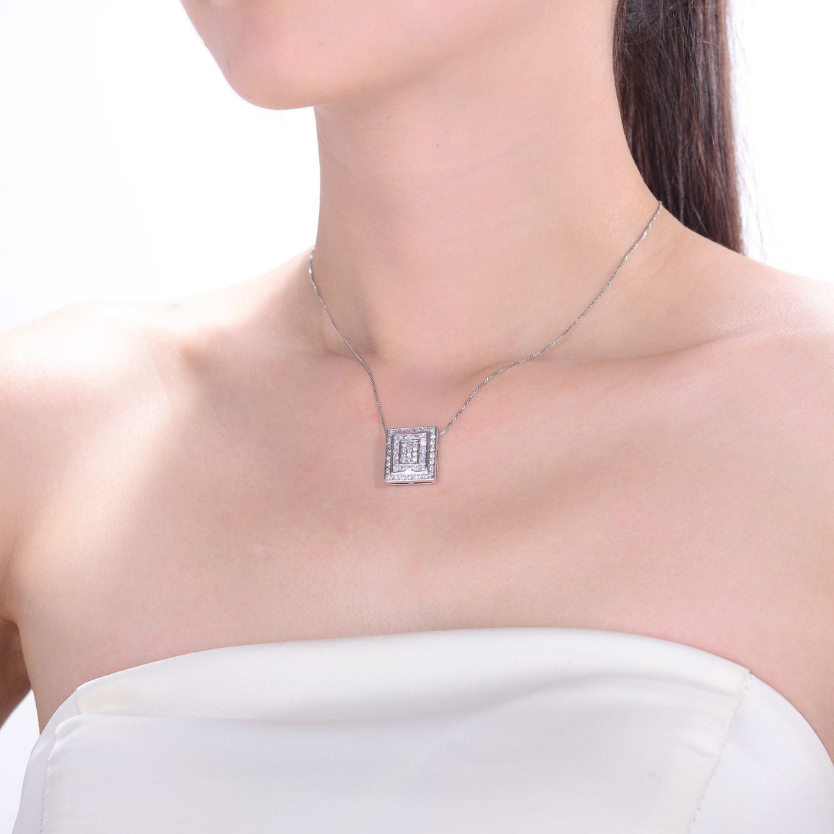 Crafted from sterling silver, this necklace features clear cubic zirconia stones in a double frame design.