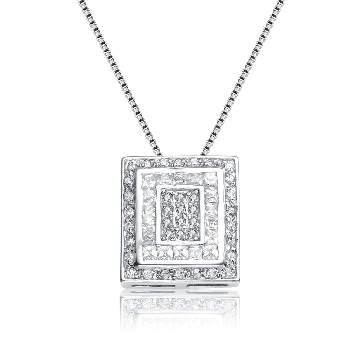 Sterling Silver Cubic Zirconia Double Frame Necklace