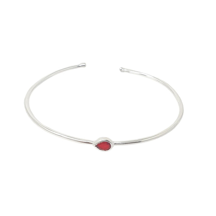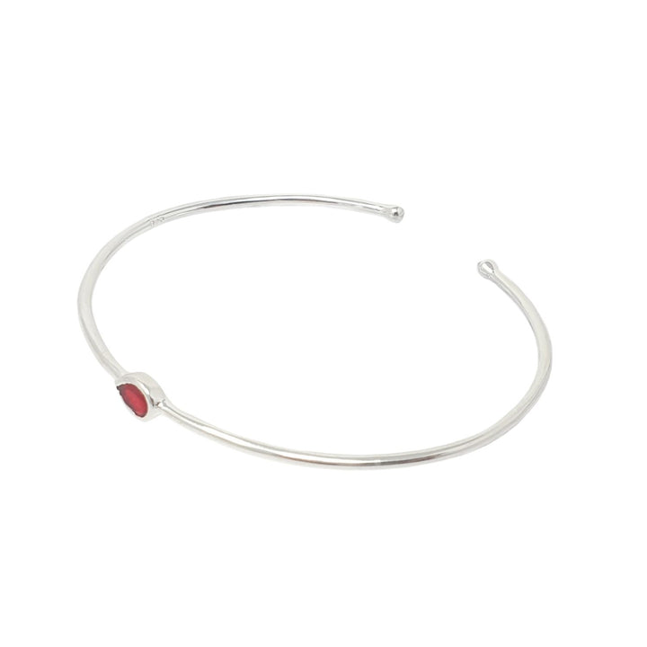 Minimalist Sterling Silver Garnet January Birthstone Bangle Bracelet